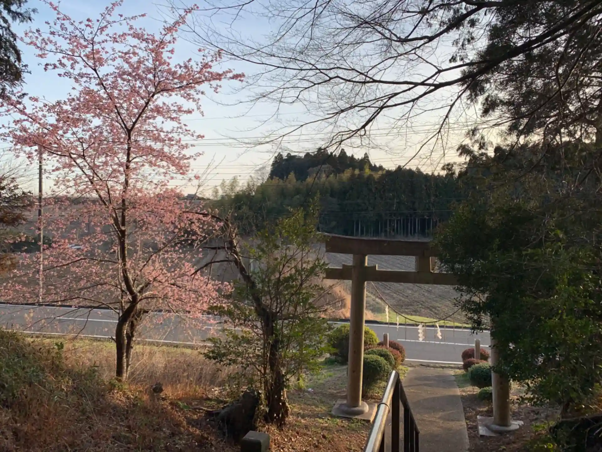 杉林の中にお社があります。行った時期は鳥居脇の梅の花が綺麗でした。