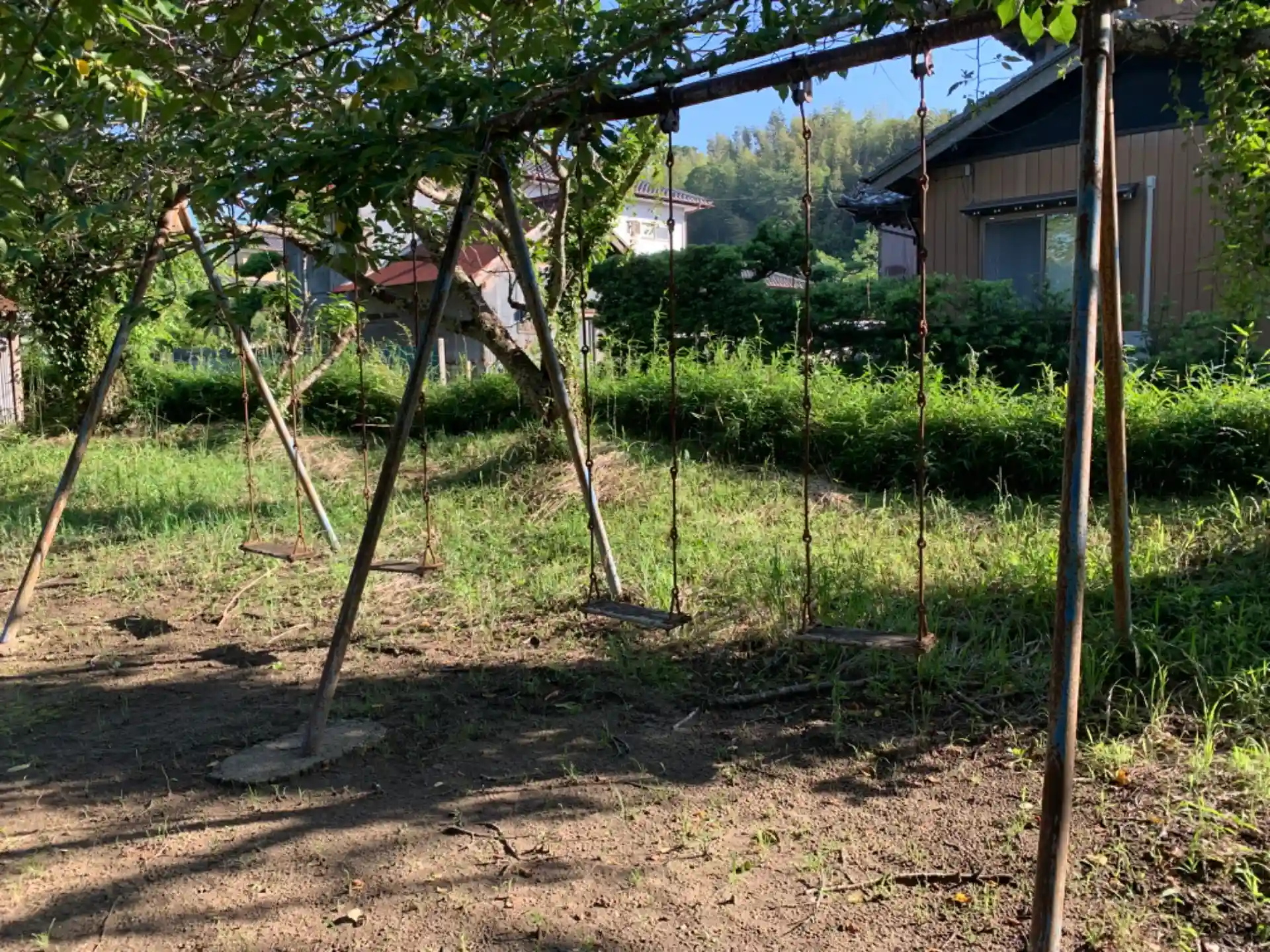 境内のブランコは座る箇所が木製で朽ちかけていました。かなり年季が入っているものと思われます。