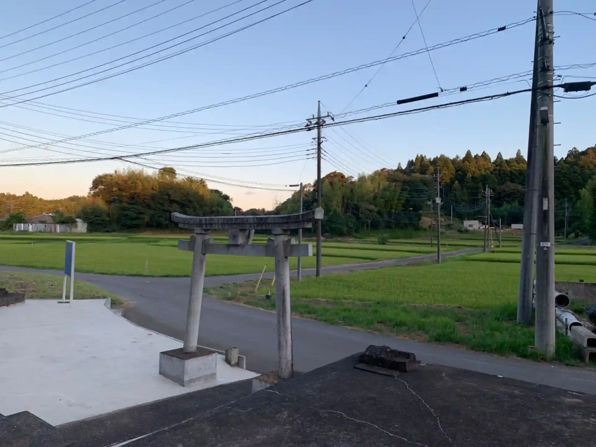 田んぼを見守る木祠。道祖神と野仏が並んでいます。