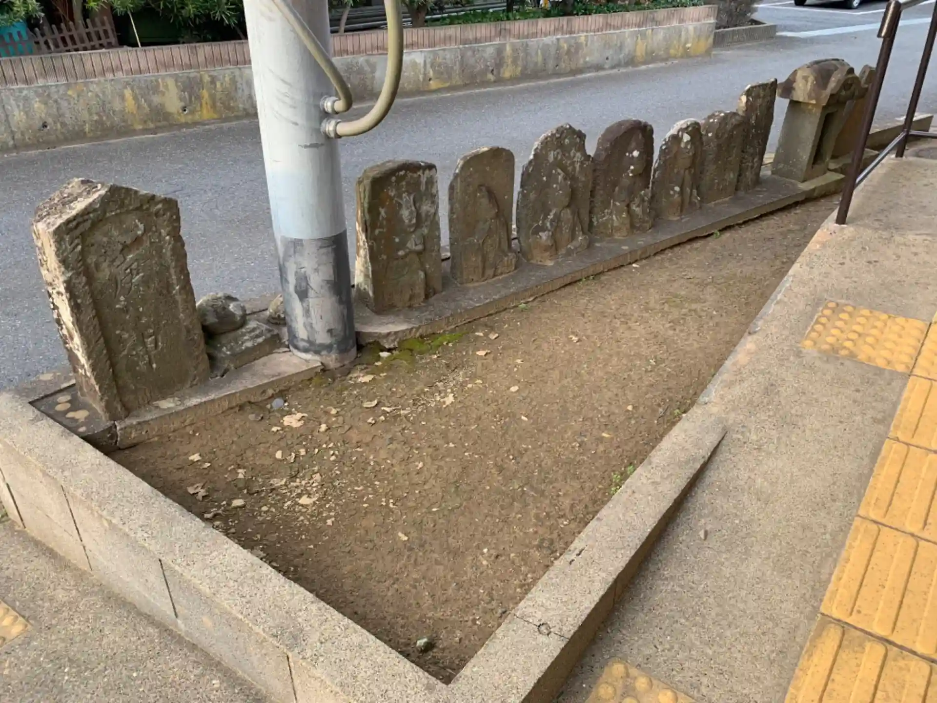 集会所脇にある神社。隣には石造物がまとめて置いてありました。