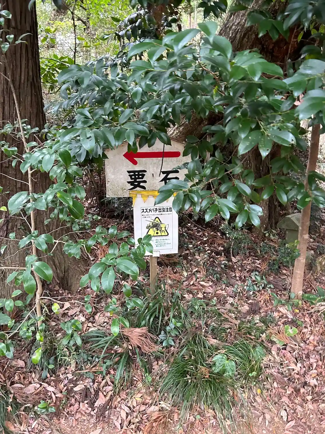 要石の目前に末社 押手神社