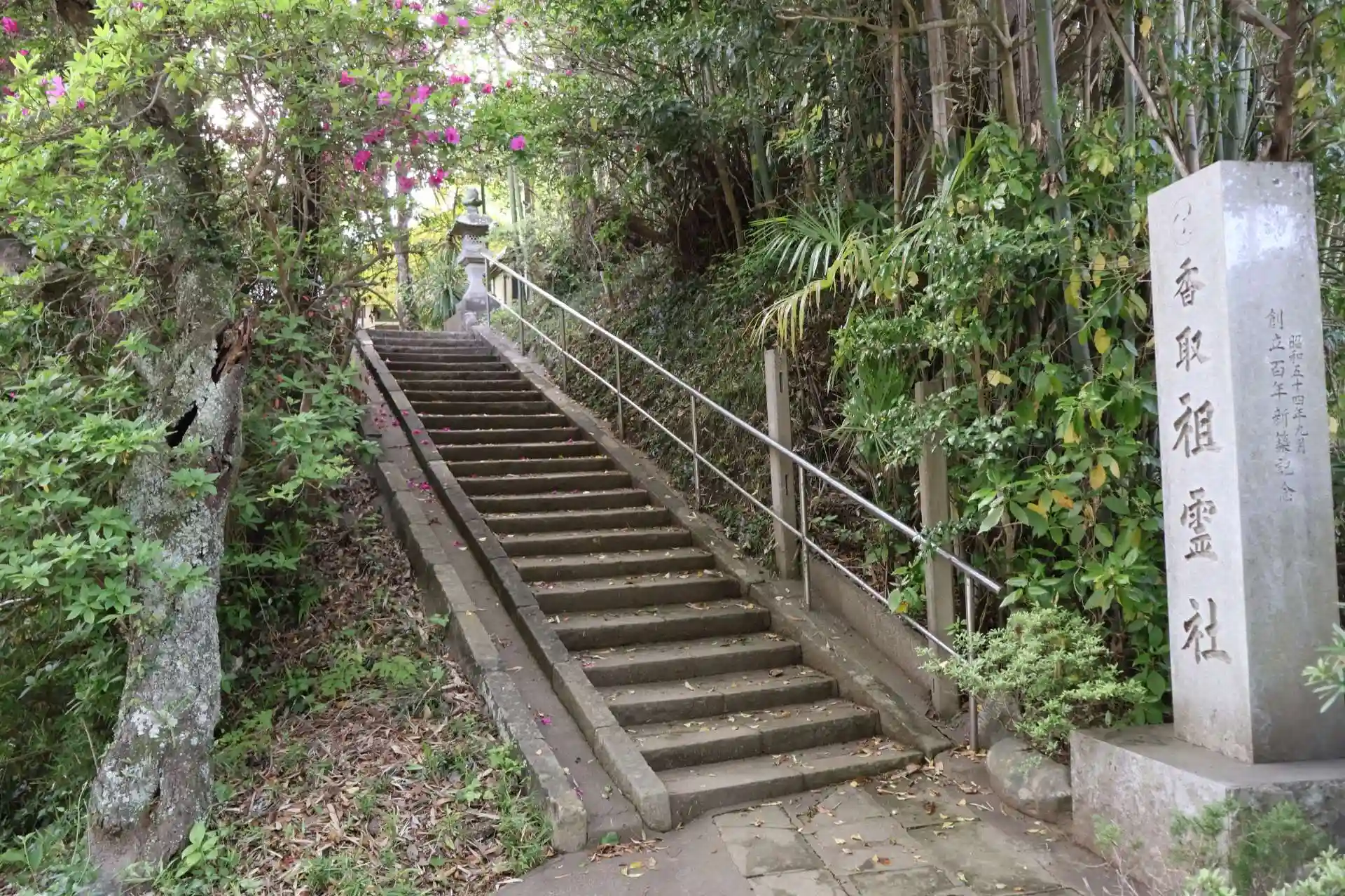 ちょっとわかりにくい場所にあります。香取神宮奥宮の御朱印授与所の裏手に石段があり、その上にあります。