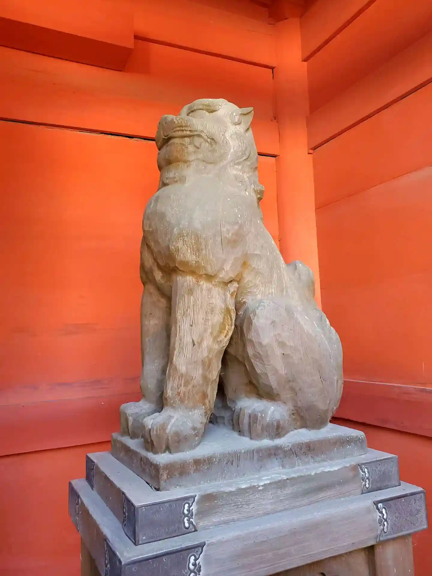 本殿屋根は檜皮葺(ひわだぶき)、黒漆基調で御神威を感じます。