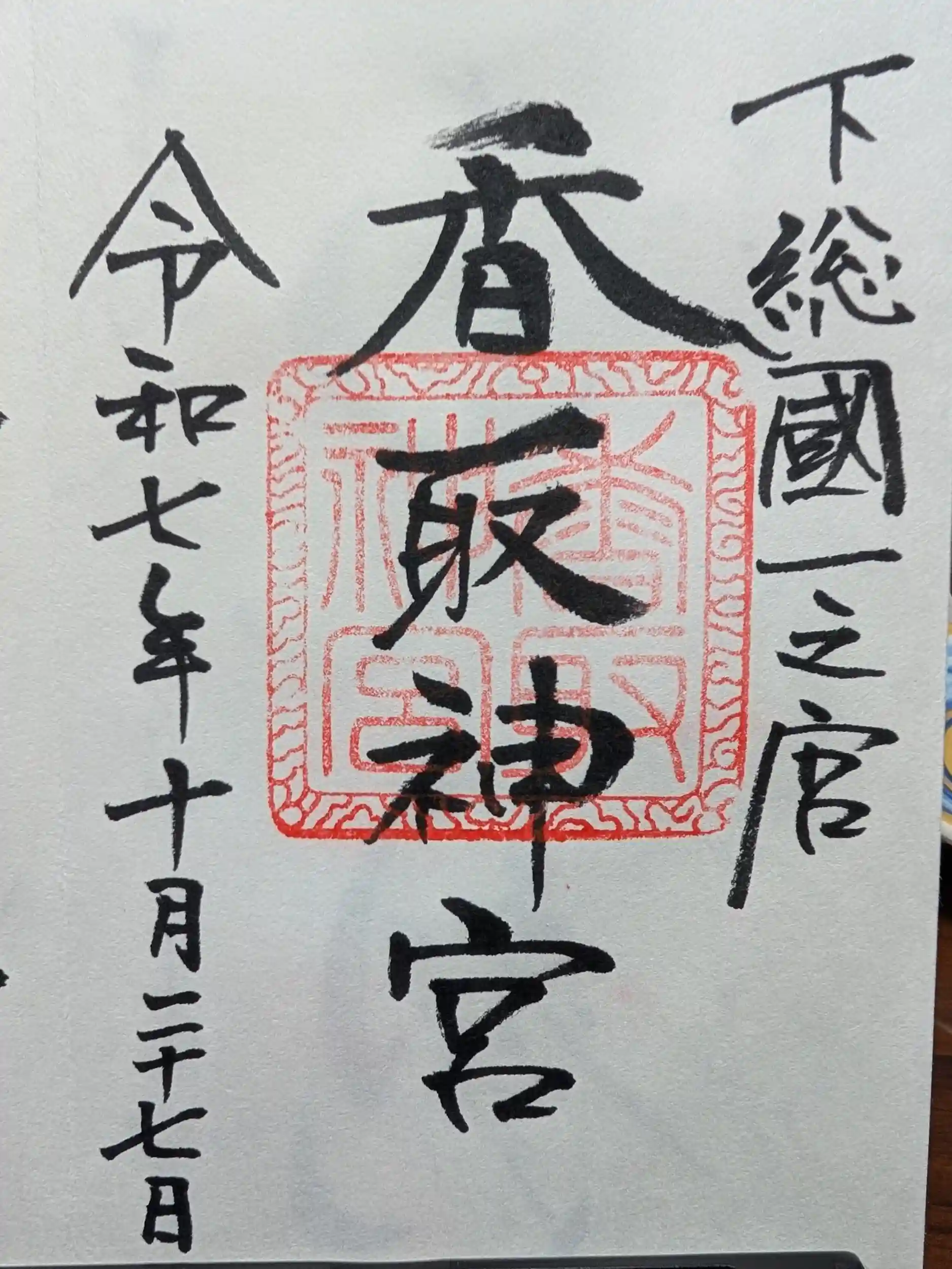下総国一宮の香取神宮さんに初参拝。直書きの御朱印を拝受。拝殿は塗り直し中につき覆いがされており残念でしたが、楼門が大半立派で満足でした。