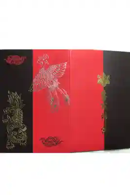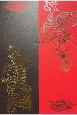 赤と黒を基調とした御朱印帳で、表面は鳳凰と獅子が描かれ、裏面は社紋である五七の桐と香取神宮の文字が入っています。