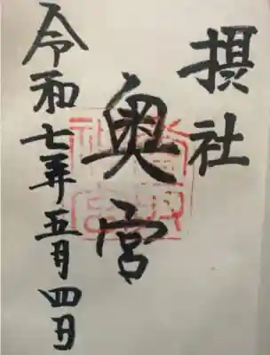 真ん中に奥宮と書かれ、右上に摂社の文字、真ん中に香取神宮の社印が押されています。