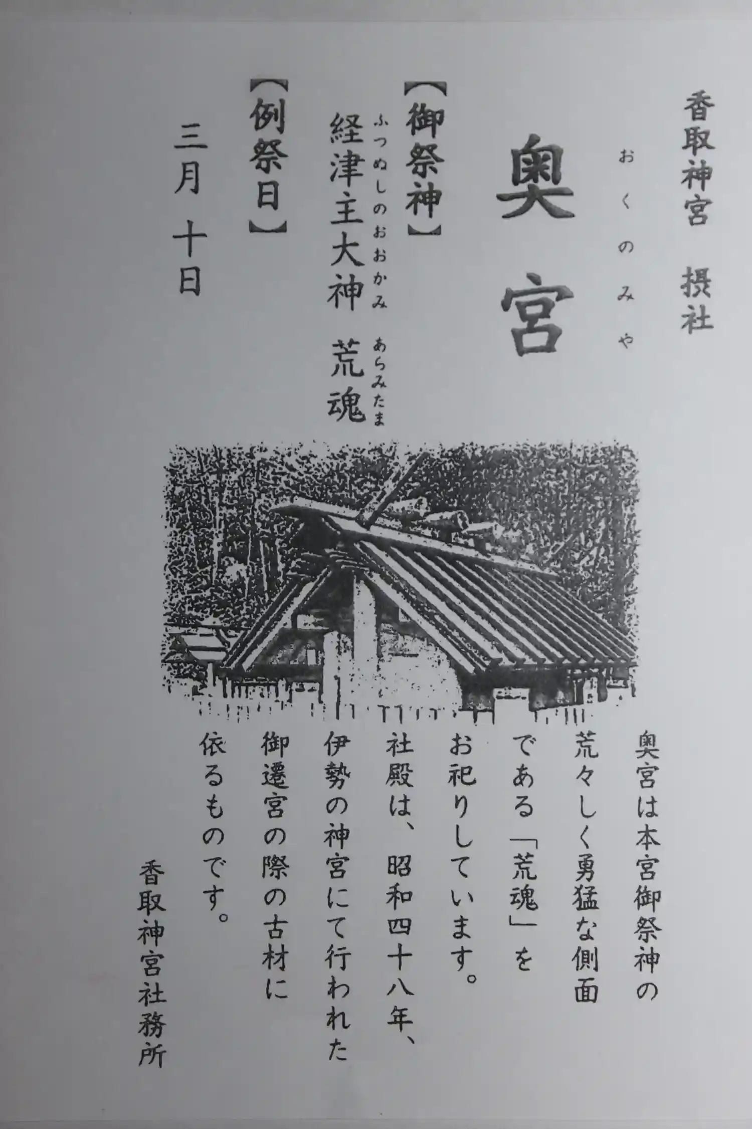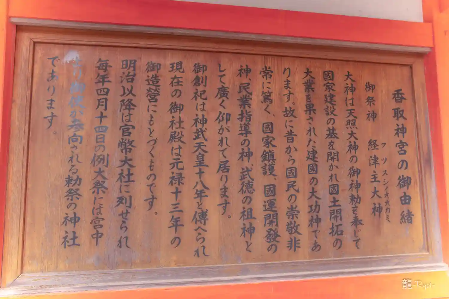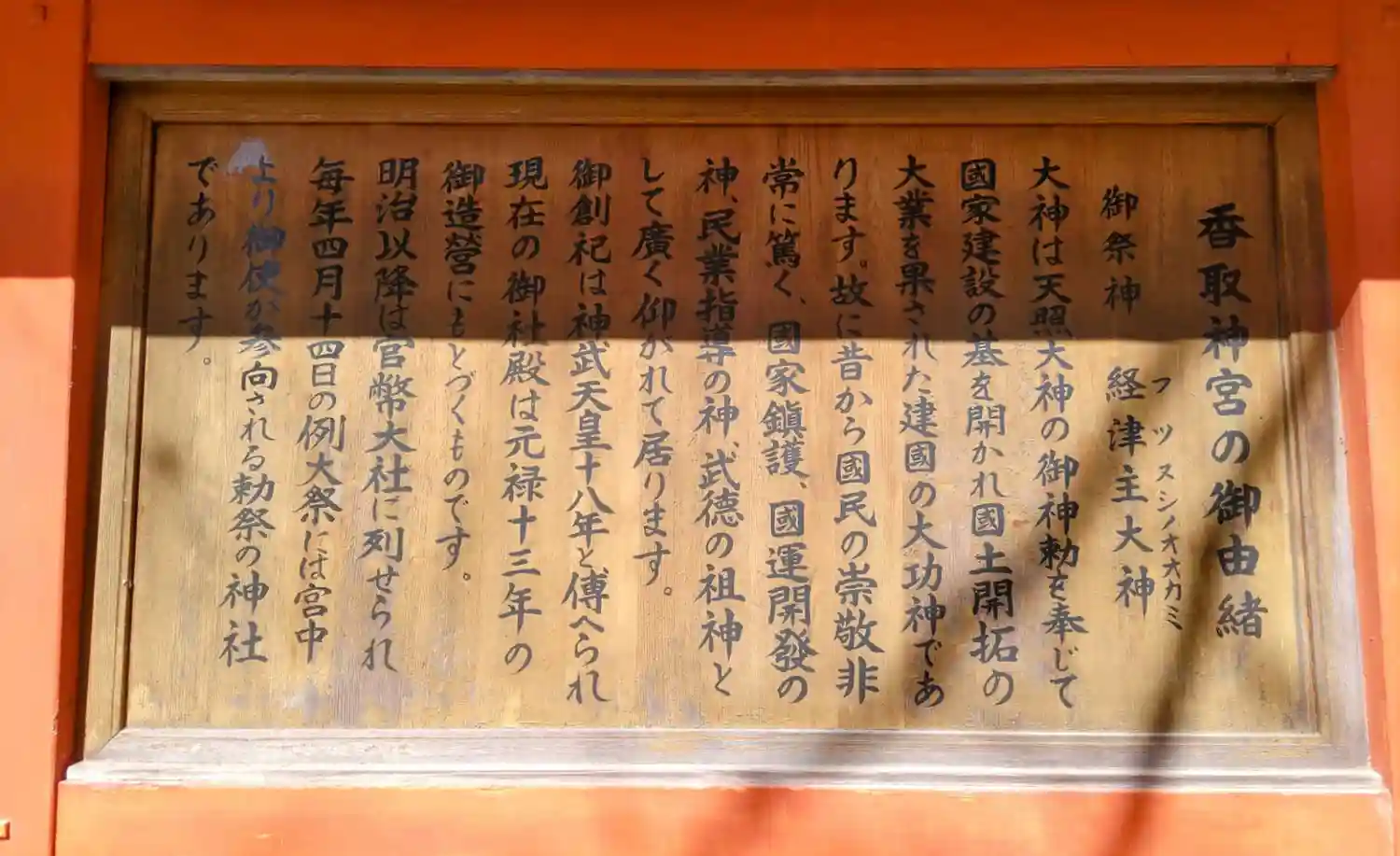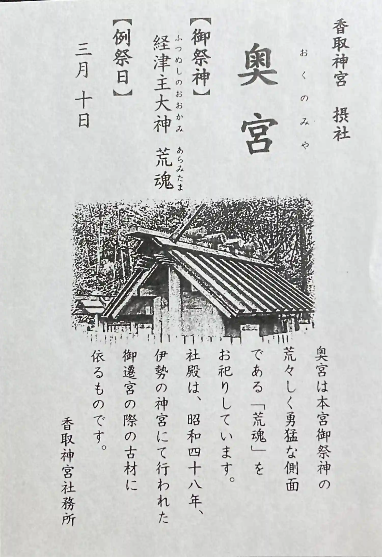 御祭神は経津主大神(ふつぬしのおおかみ)