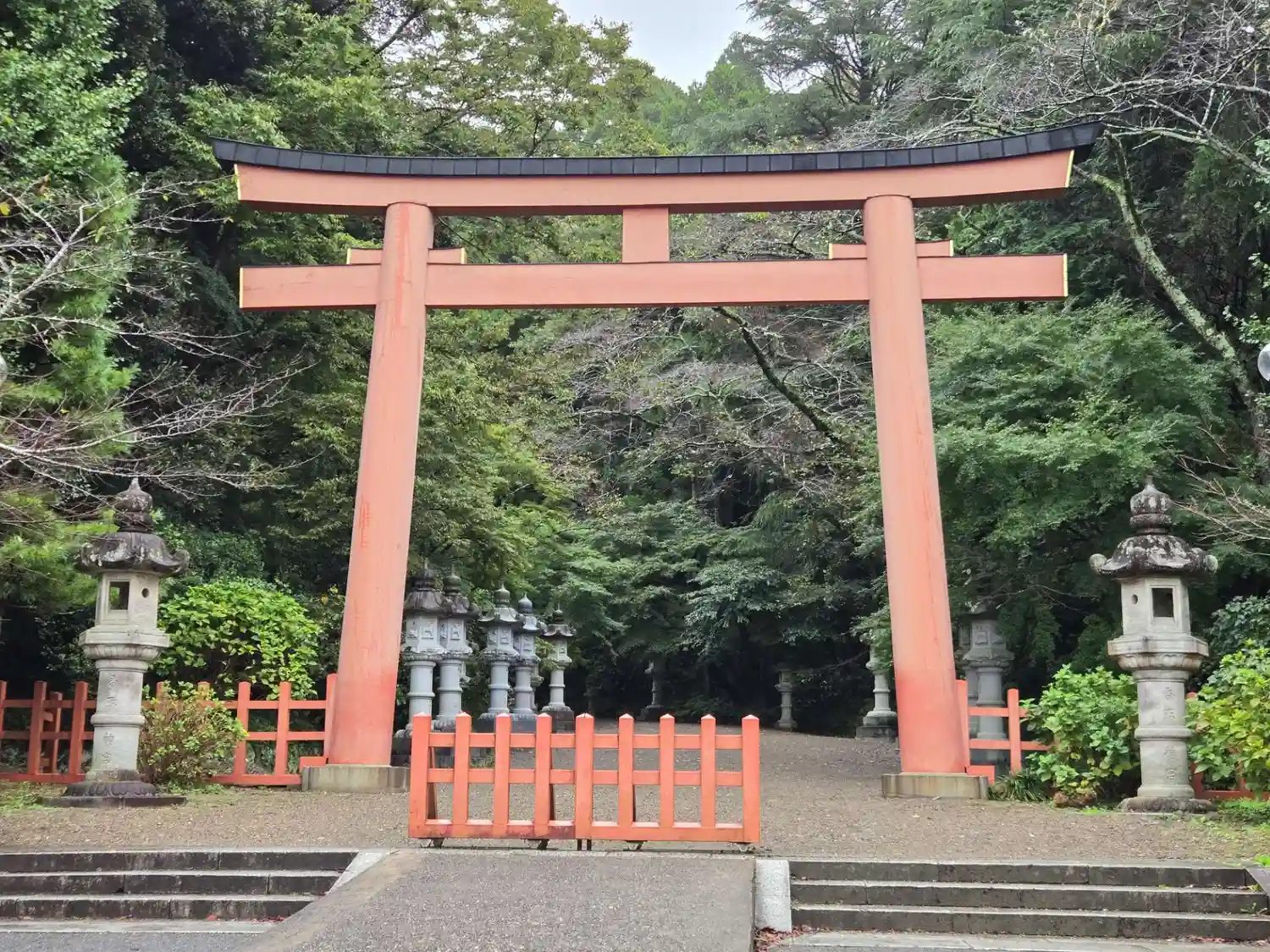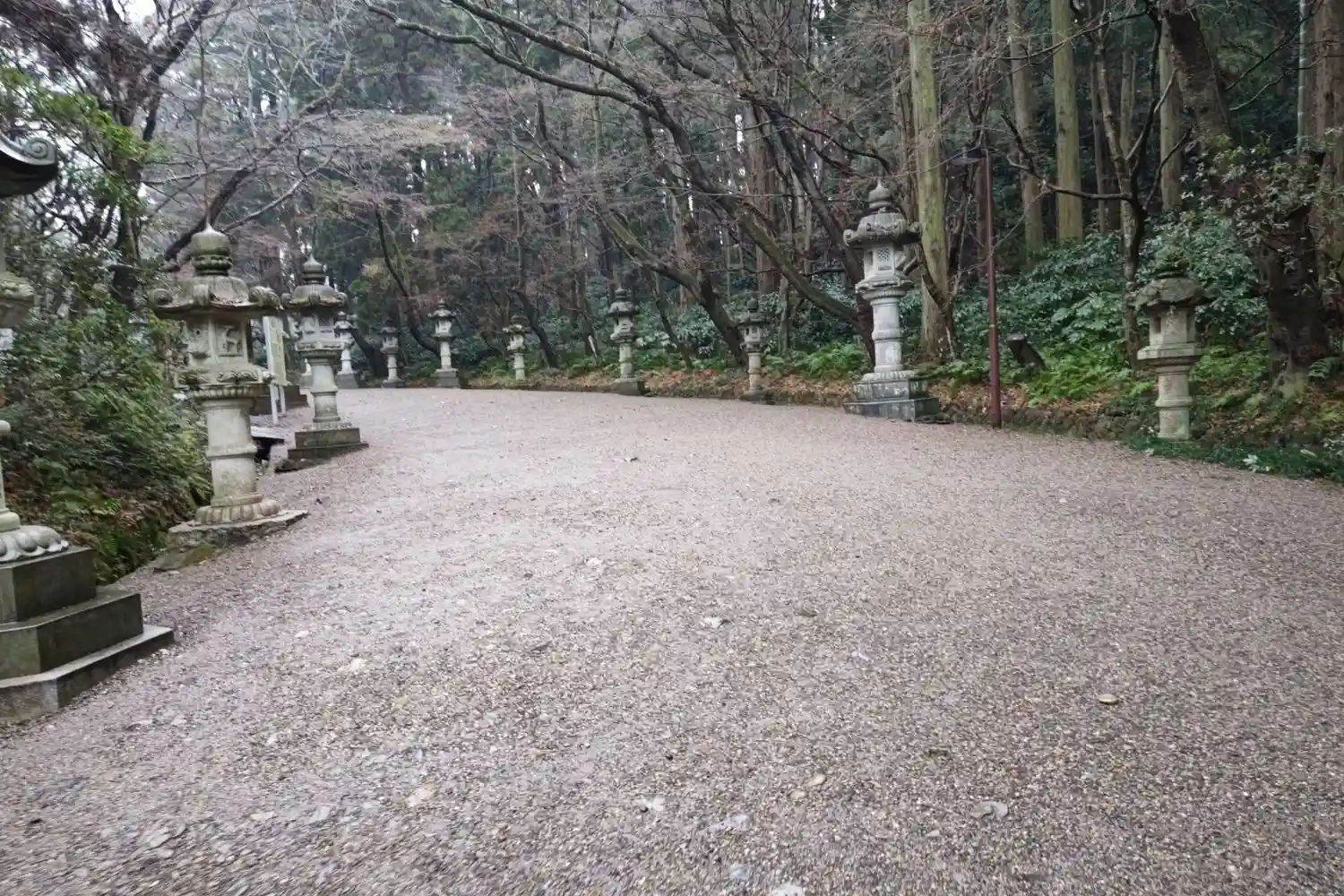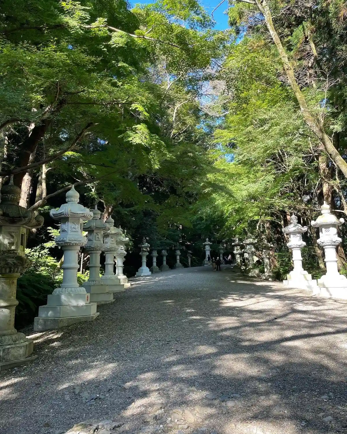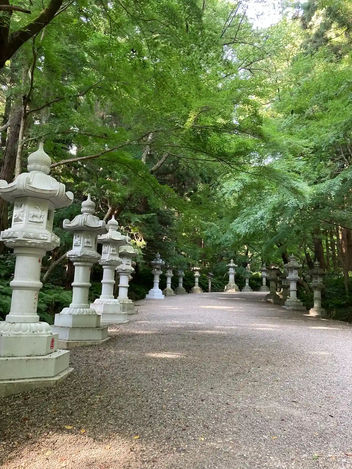 木々に囲まれて大きな石灯籠の並ぶ参道はとても良い雰囲気でした。