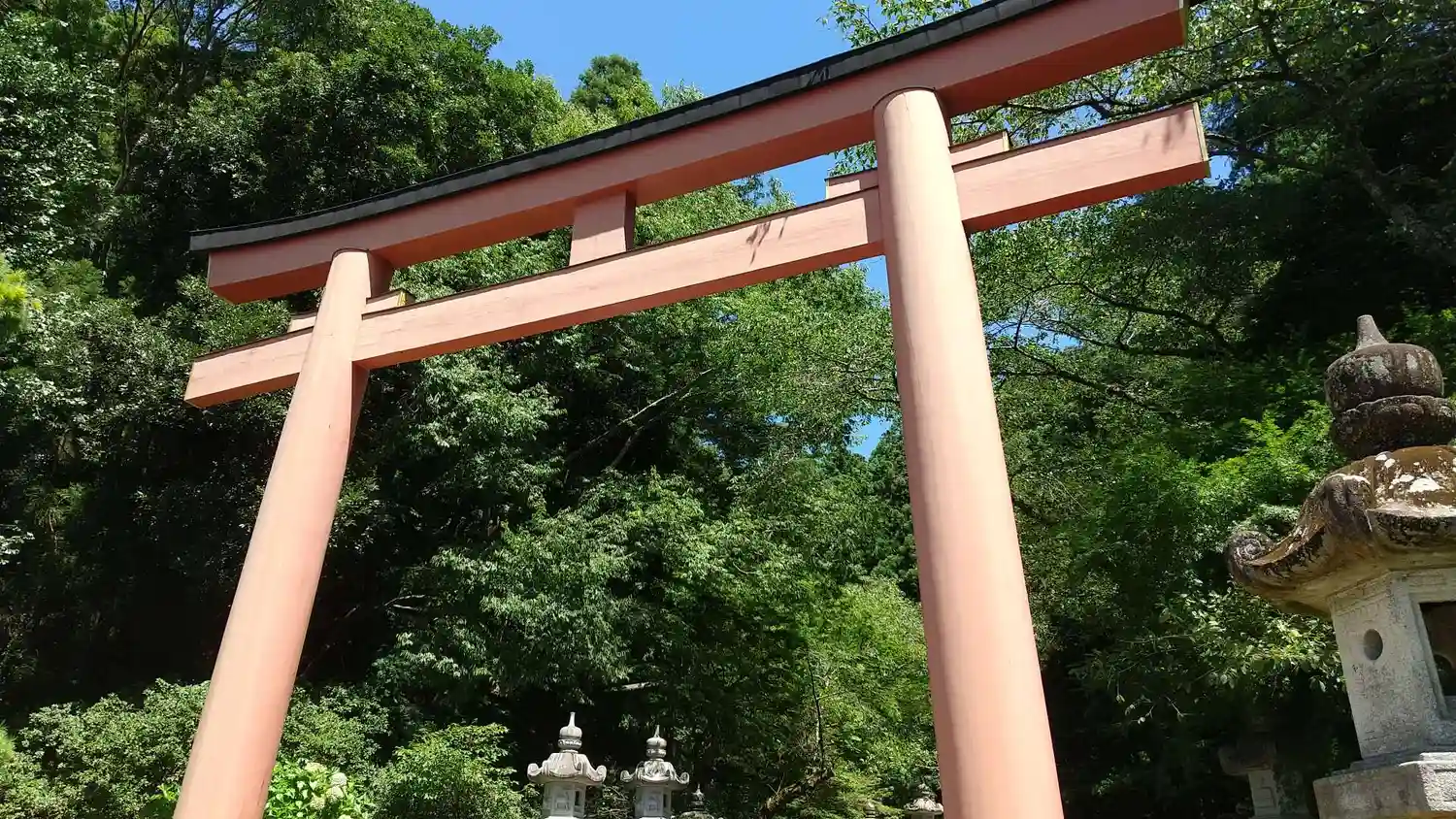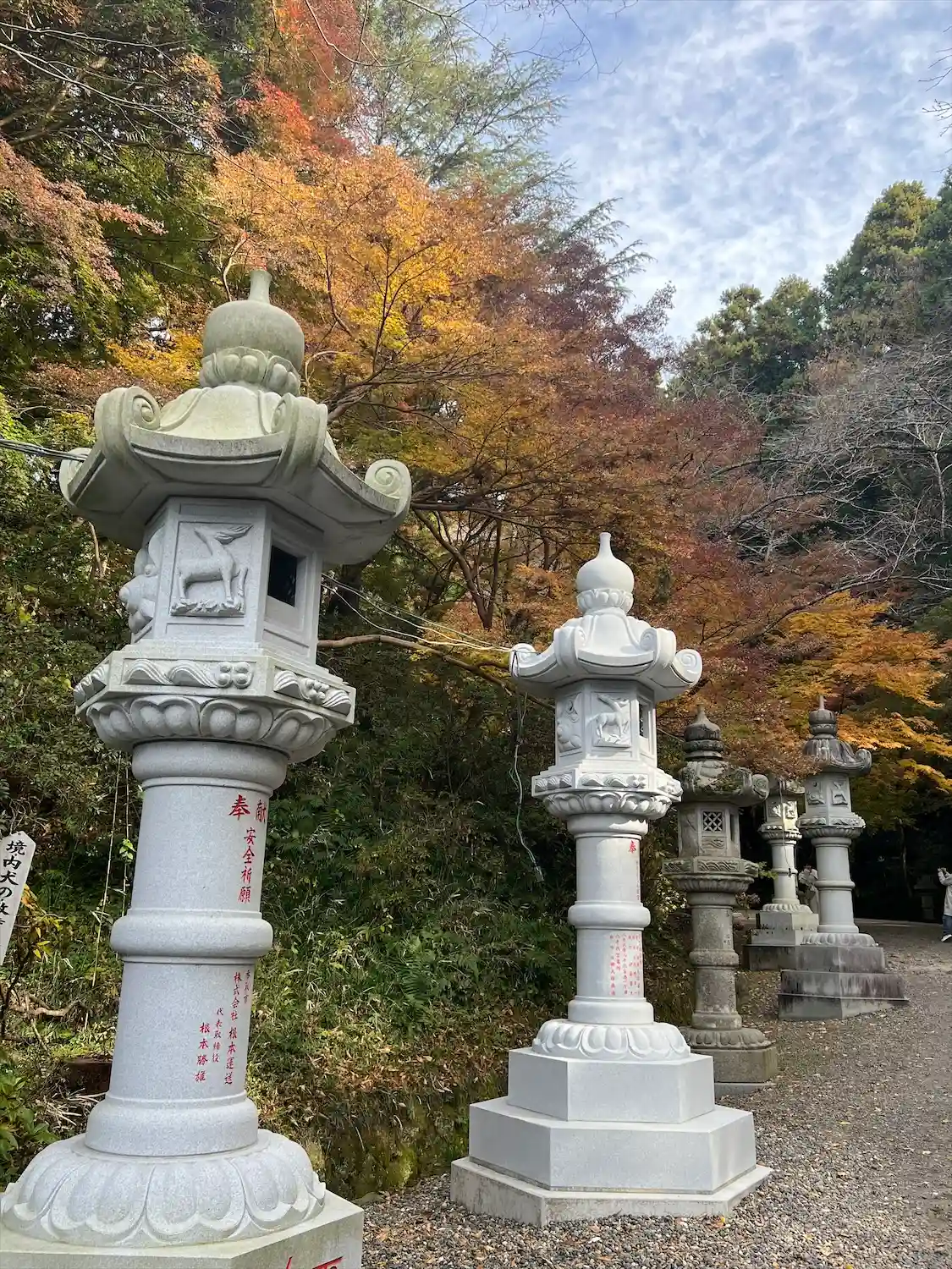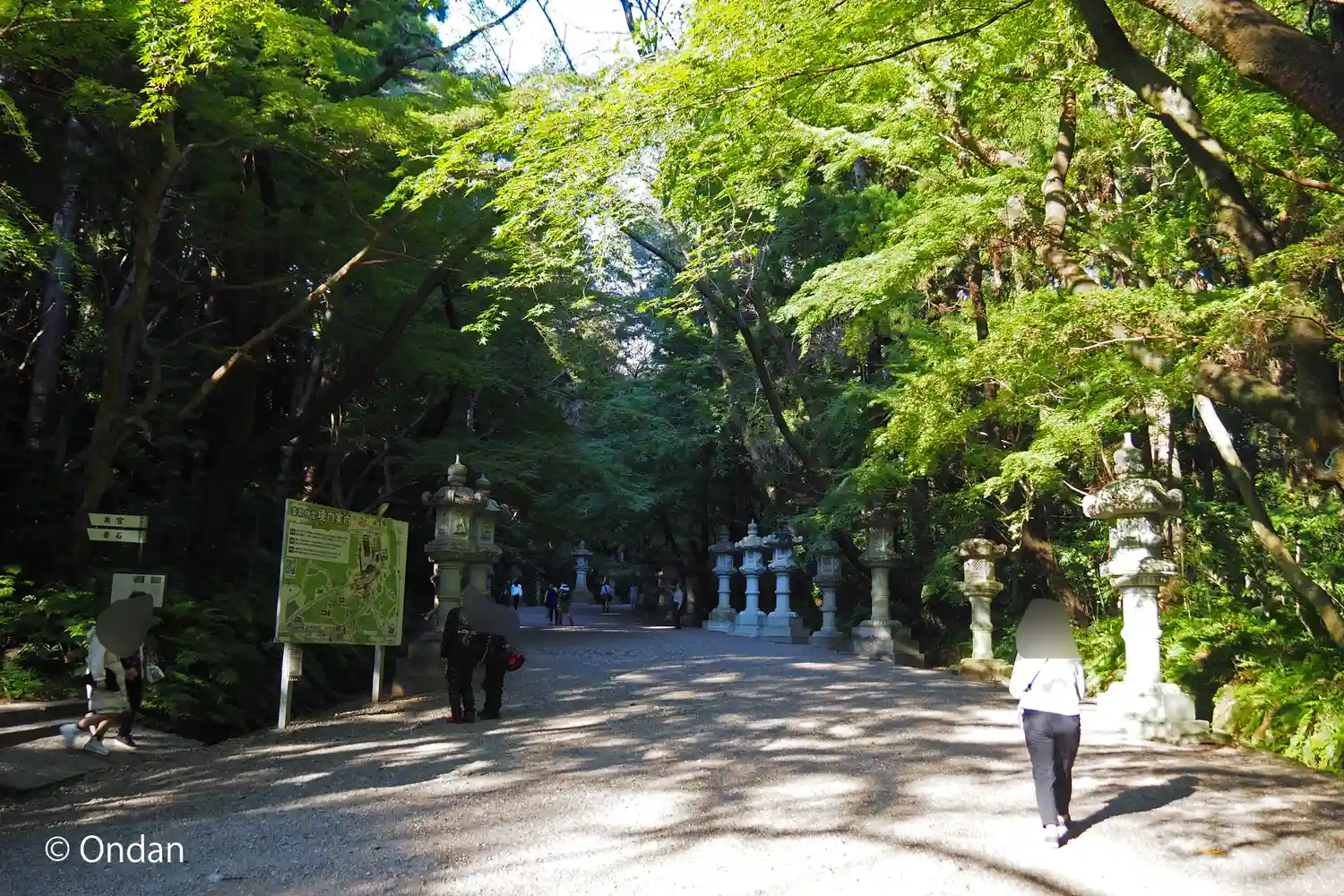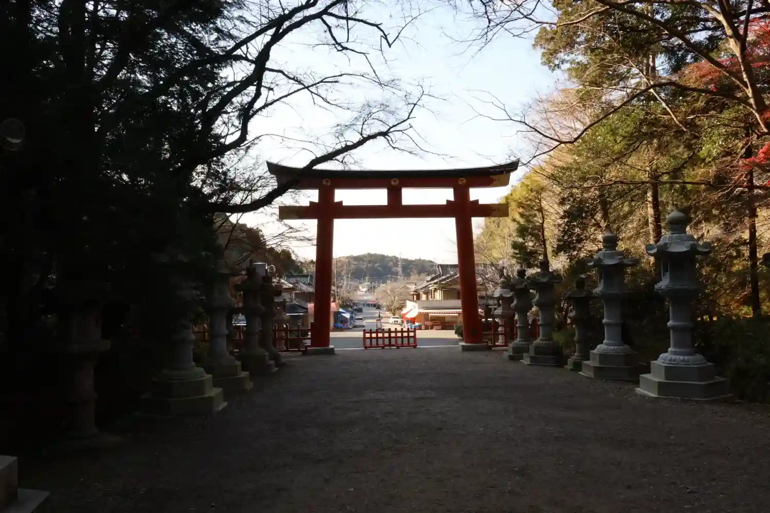 木々に囲まれて大きな石灯籠の並ぶ参道はとても良い雰囲気でした。