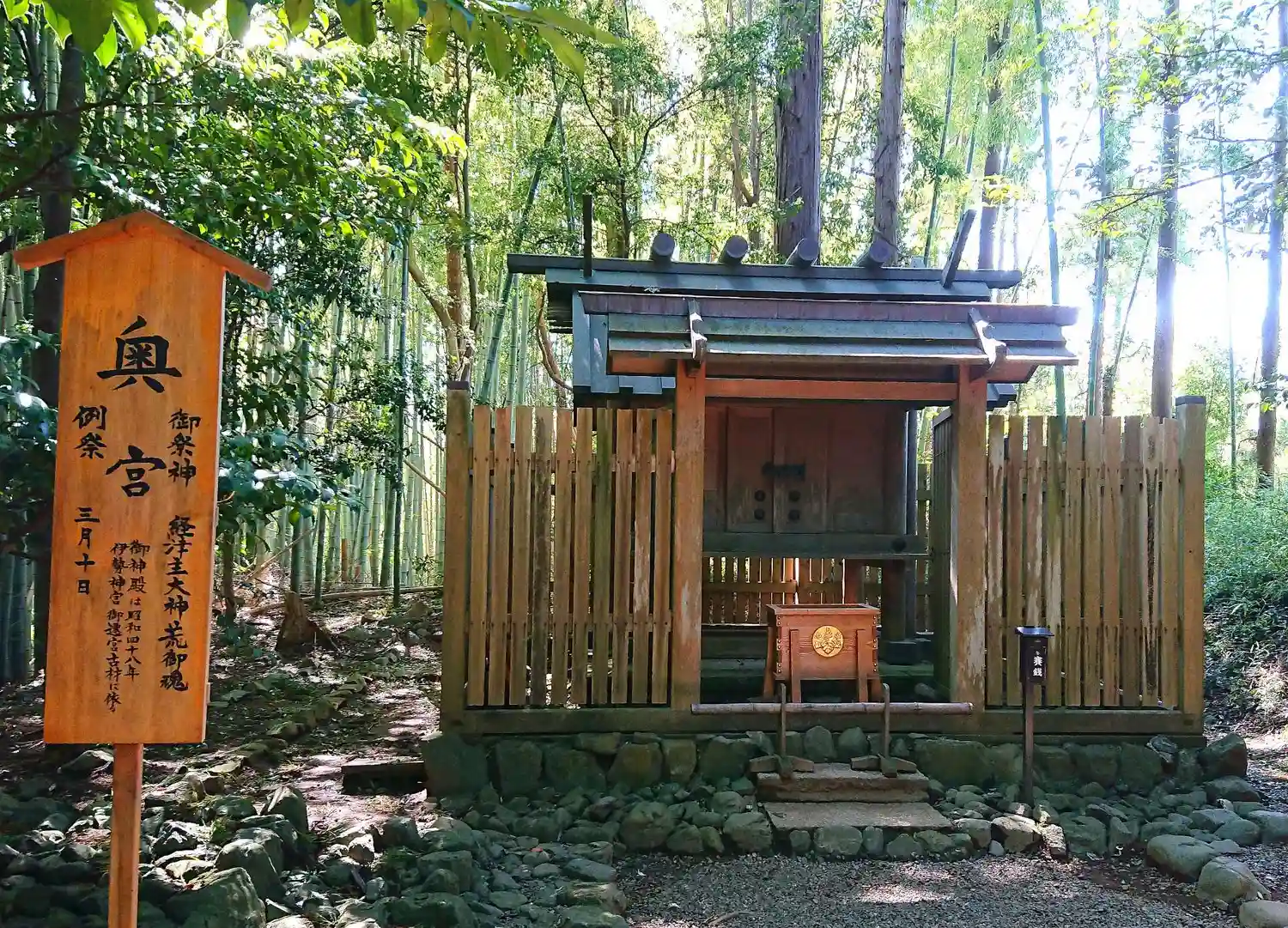 社殿は昭和48年伊勢神宮御遷宮の折の古材によるもの