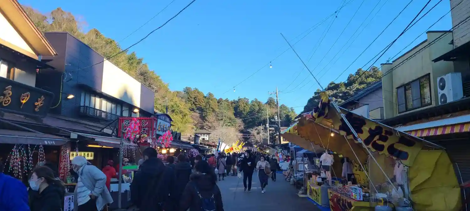 参道入り口前の駐車場に車を停めて、お食事処とお土産屋さんの参道を進…
