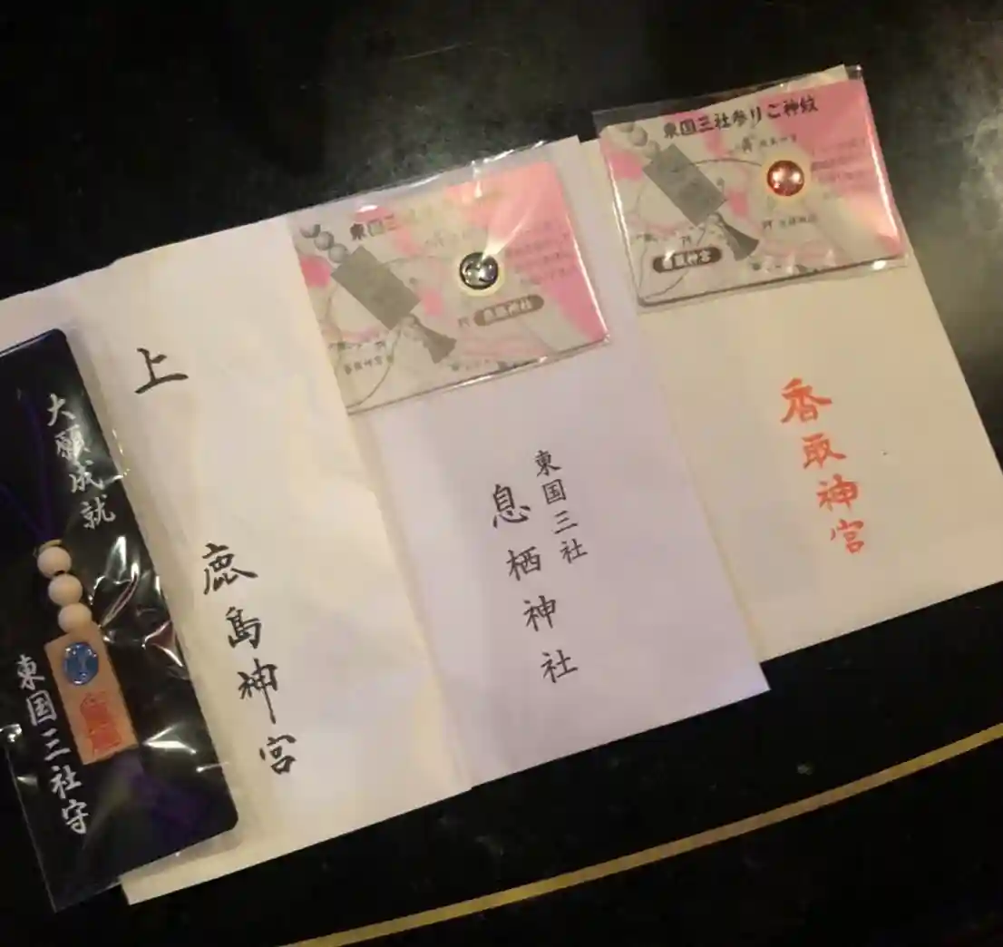 東国三社巡ってコンプリートの御守り。