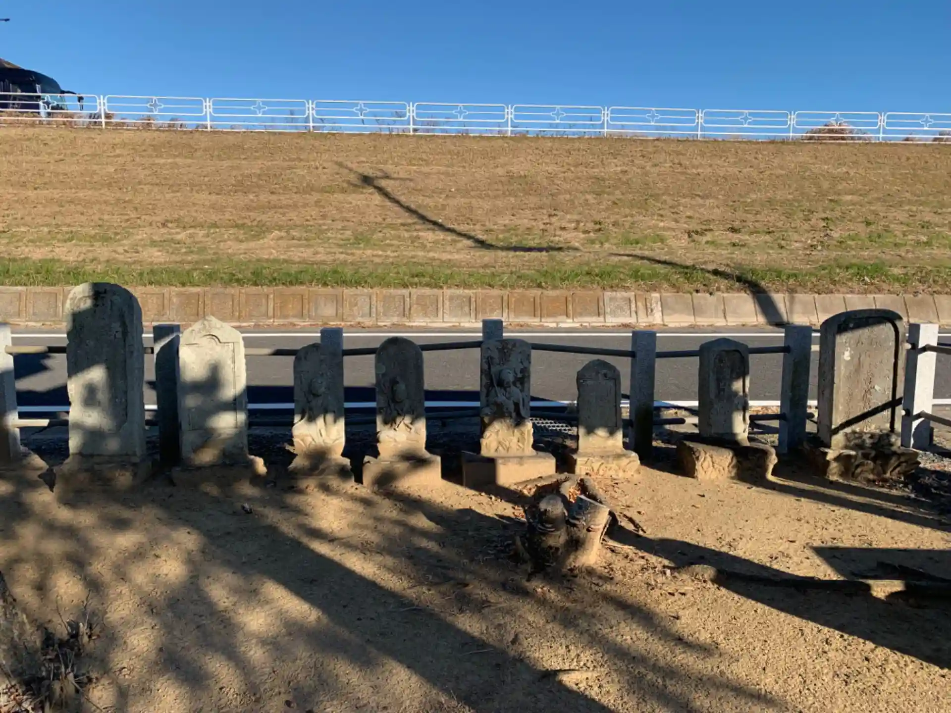 利根川沿いにある神社。境内に石仏がいくつも並んでいます。