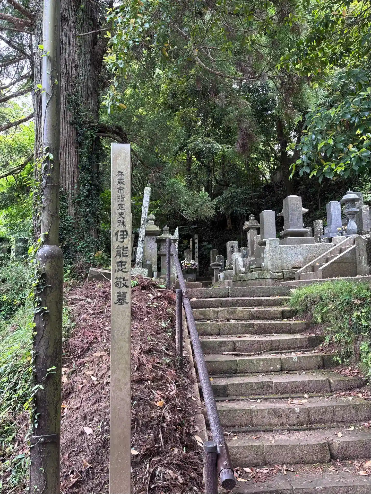 伊能忠敬のお墓があります。もう少し秋が深まった頃にお参りすると紅葉が美しそうな…