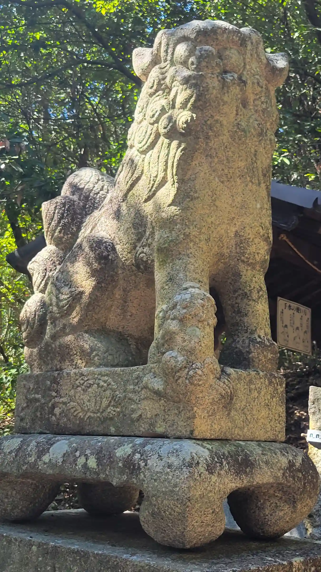 立派な狛犬ですが向かって右側が少し削れている?ように見えます