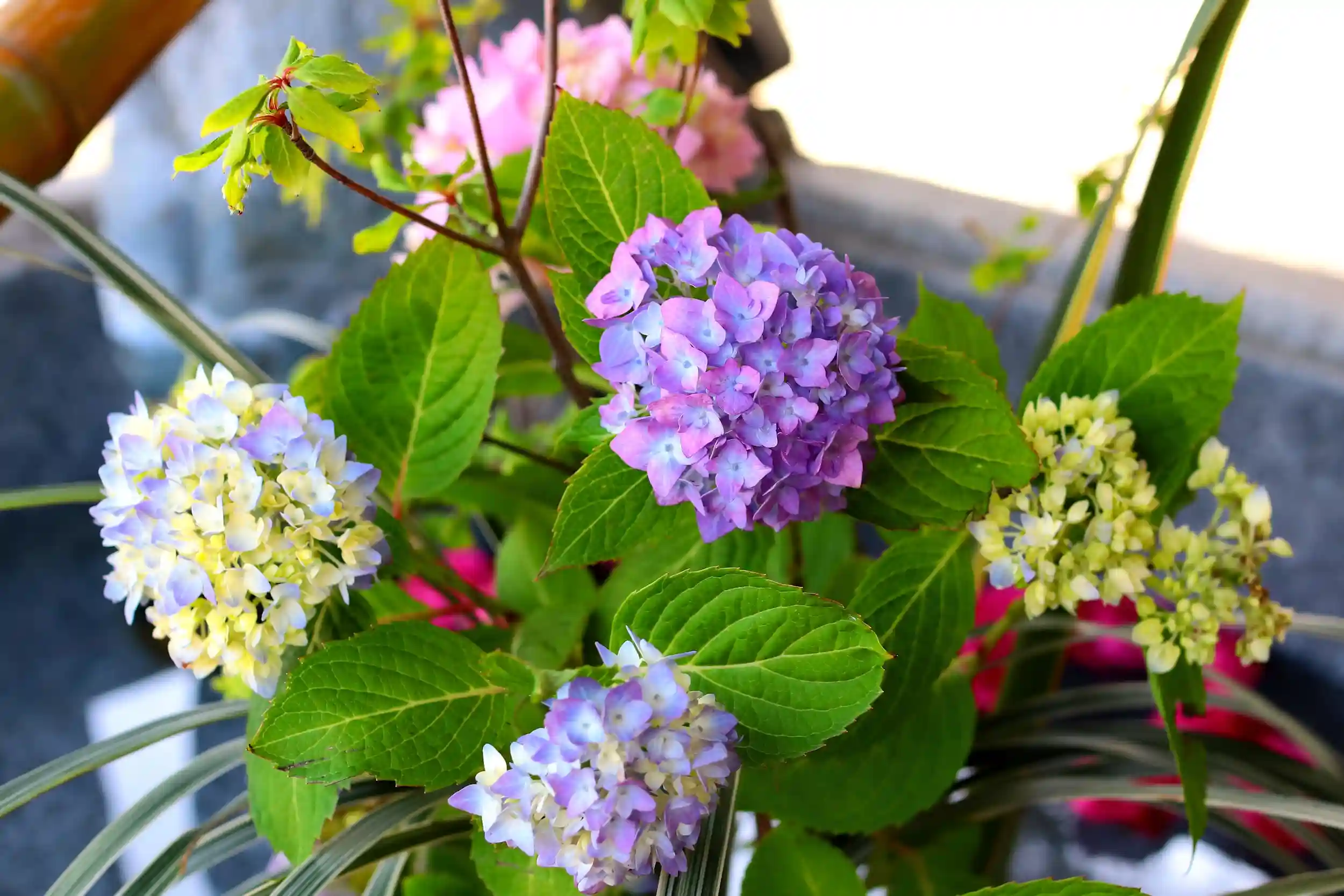 ドウダンツツジ、リリーグラス、ニューサイランの葉