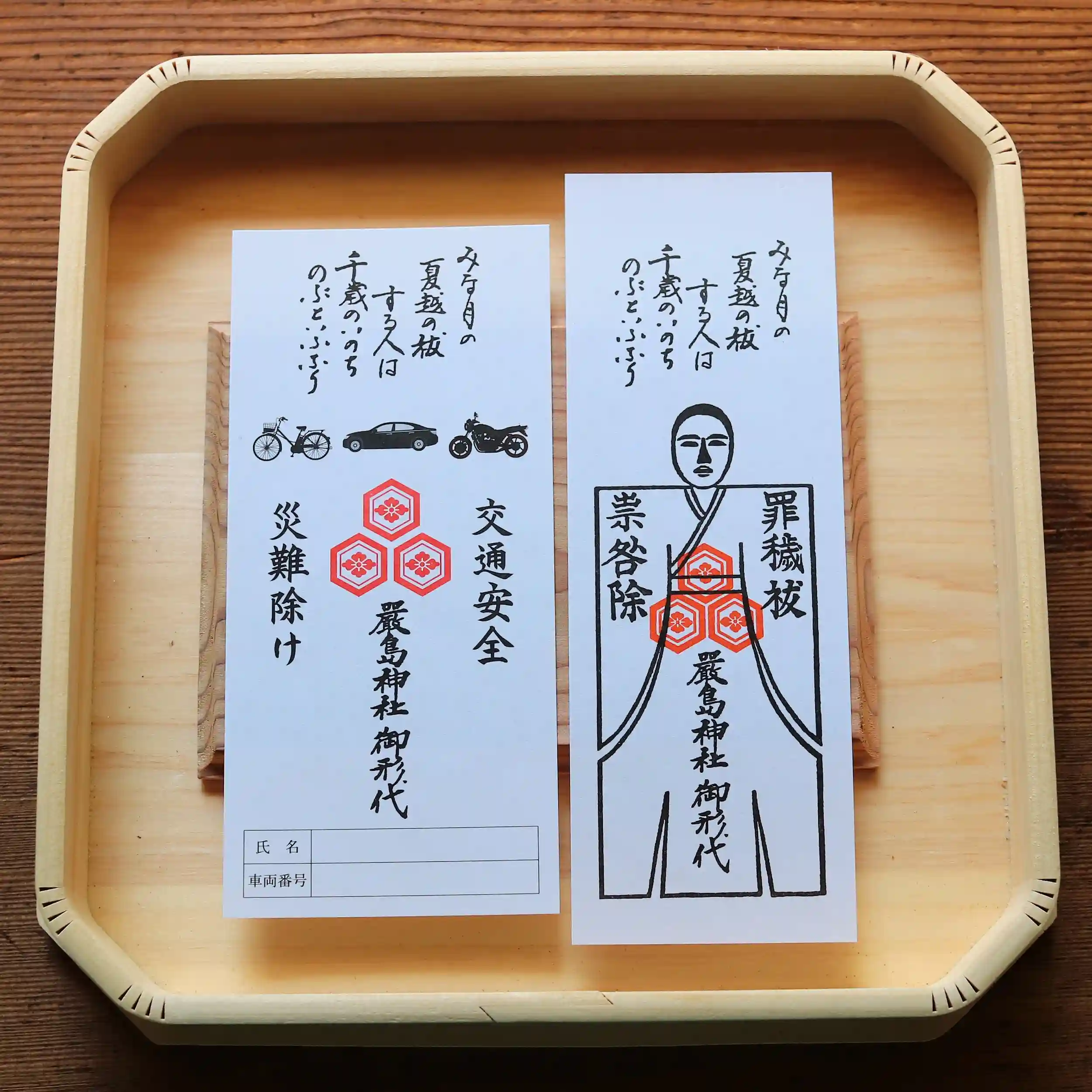 「ひな形」や「車の形代」は授与所にて頒布致しております。