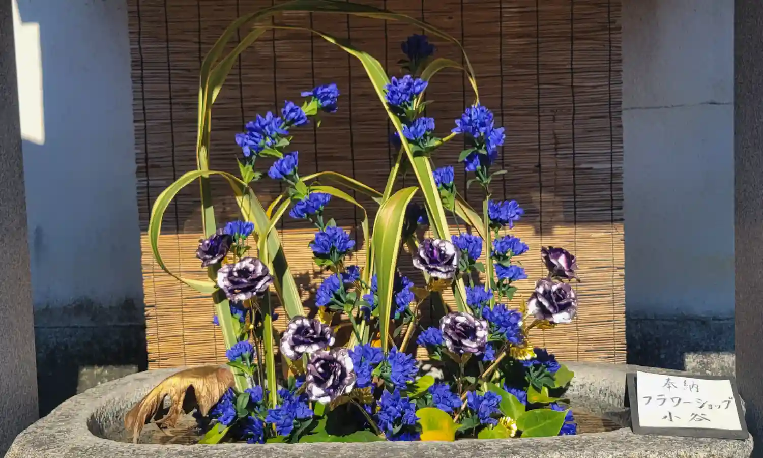 フラワーショップ小谷さん(松山市祓川2丁目13−14)より 奉納いただいている花手水。 正…