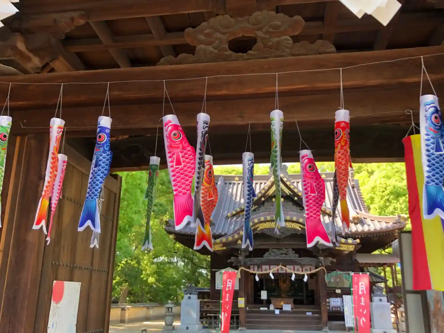 鯉のぼりが風に揺られてました。