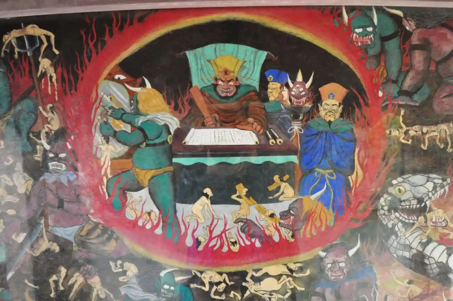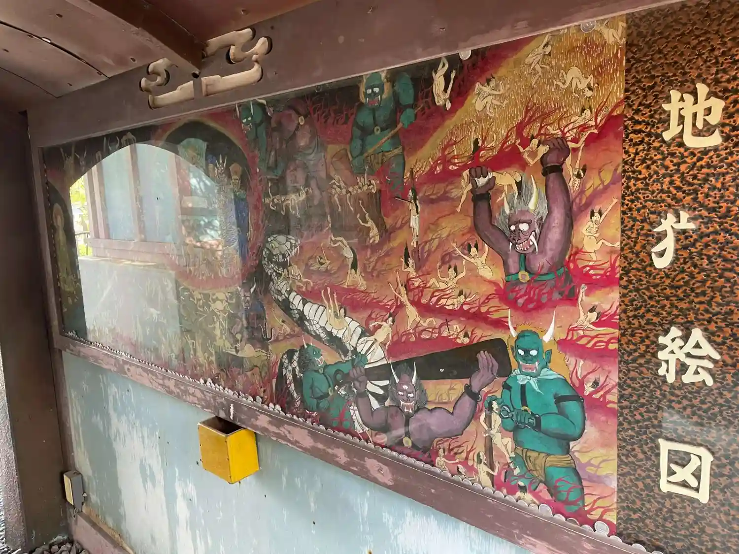 本堂と大師堂の間。「極楽の途」「地獄の途」があり、極楽には美しい浄土が、地獄には餓鬼道、畜生道、修羅道などが描かれている。