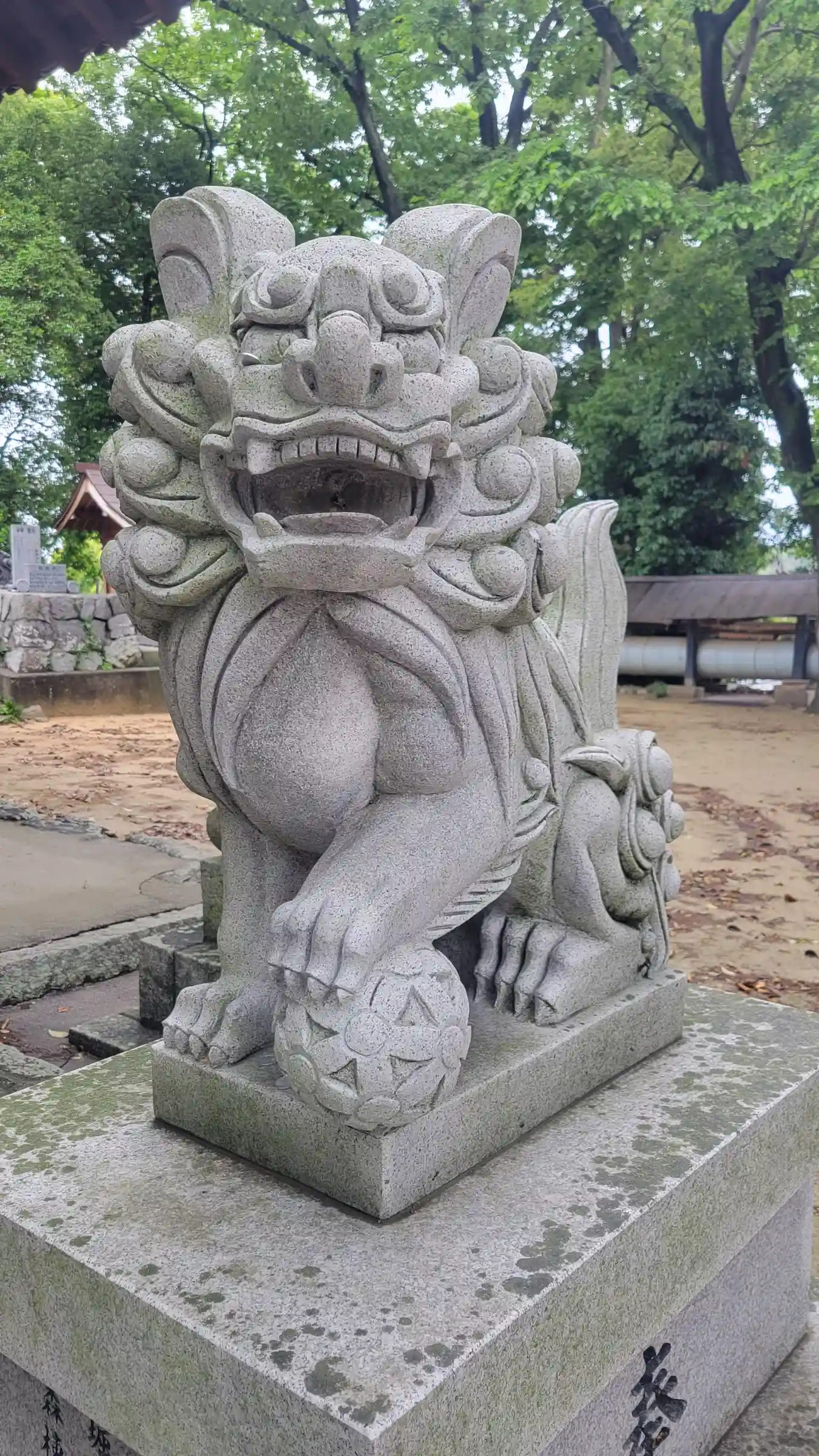 何故か狛犬の目に一円玉が刺さっていました