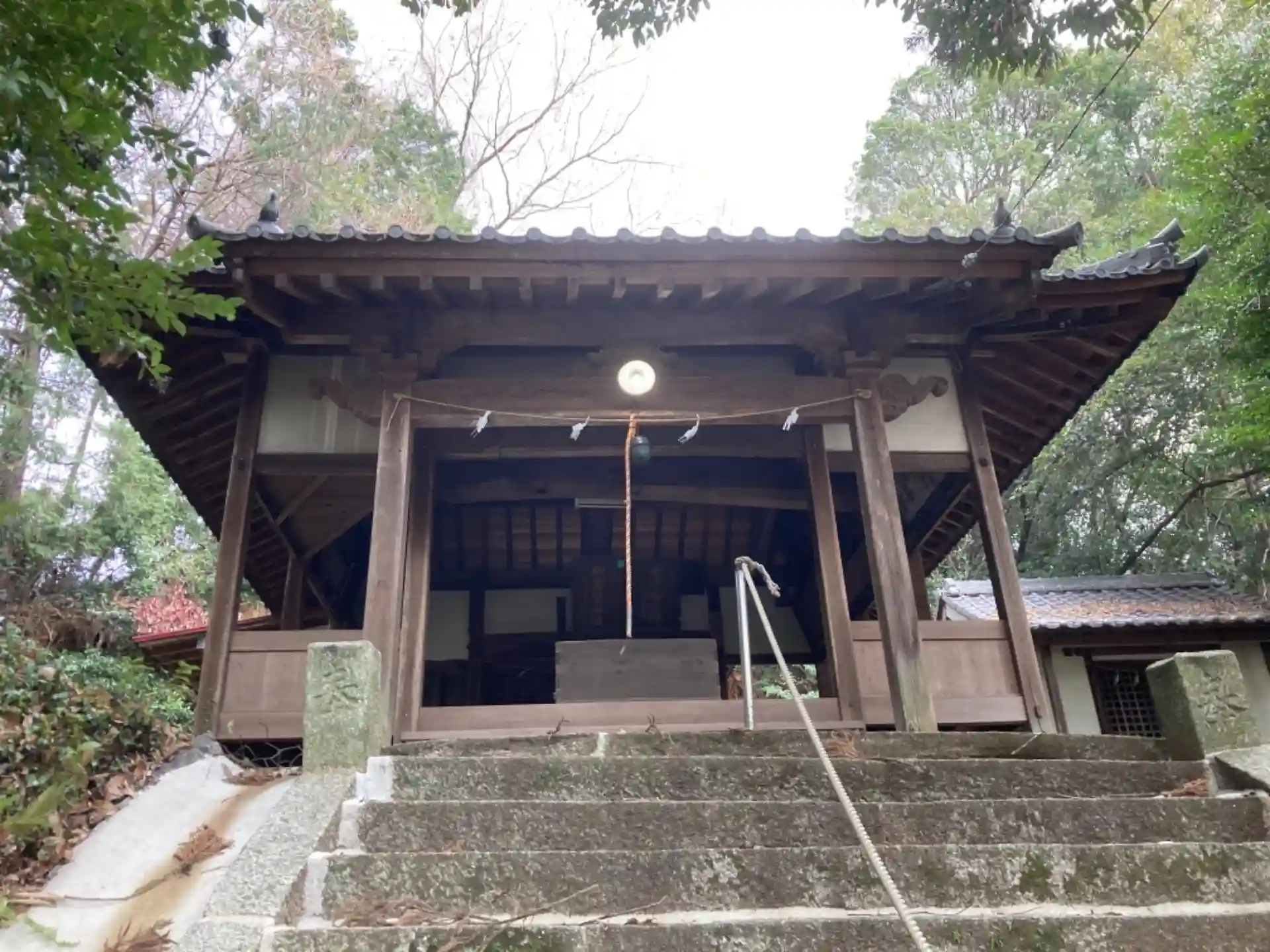 愛媛県神社庁のホームページでは駐車場有となっていましたが道が狭そうでしたので近くの広いところに停めて歩いて行きました。