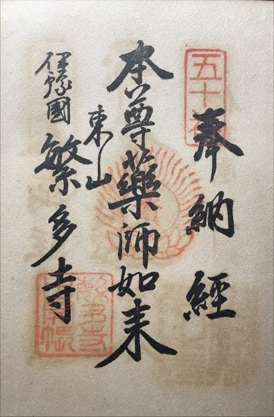 四国八十八ヶ所お遍路第50番札所、東山瑠璃光院繁多寺はんだじ。孝謙天皇勅願、行基菩薩開基。ご本尊行…