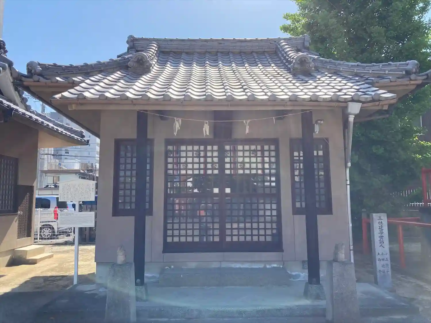 拝殿の戸は閉まってるので、紙が貼ってある部分から手を入れてお賽銭をいれました。