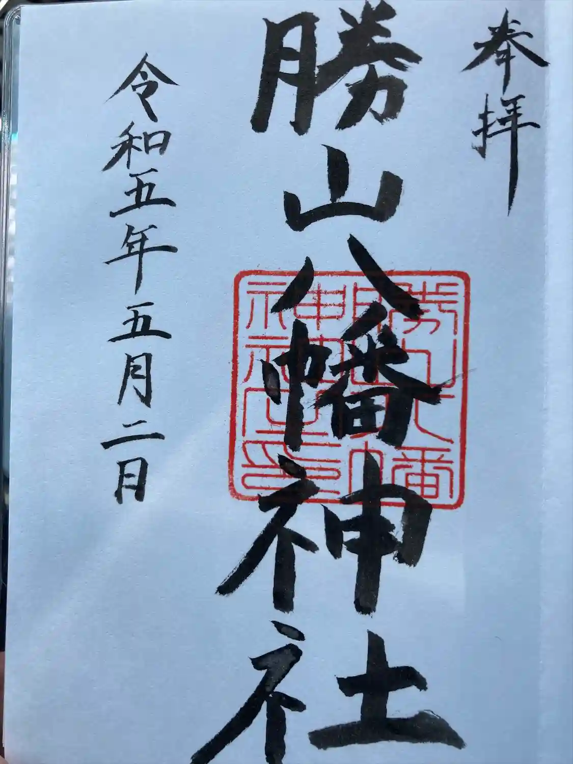 拝殿左のご自宅に伺い阿沼美神社と境内社の勝山八幡神社の御朱印をいただきました。