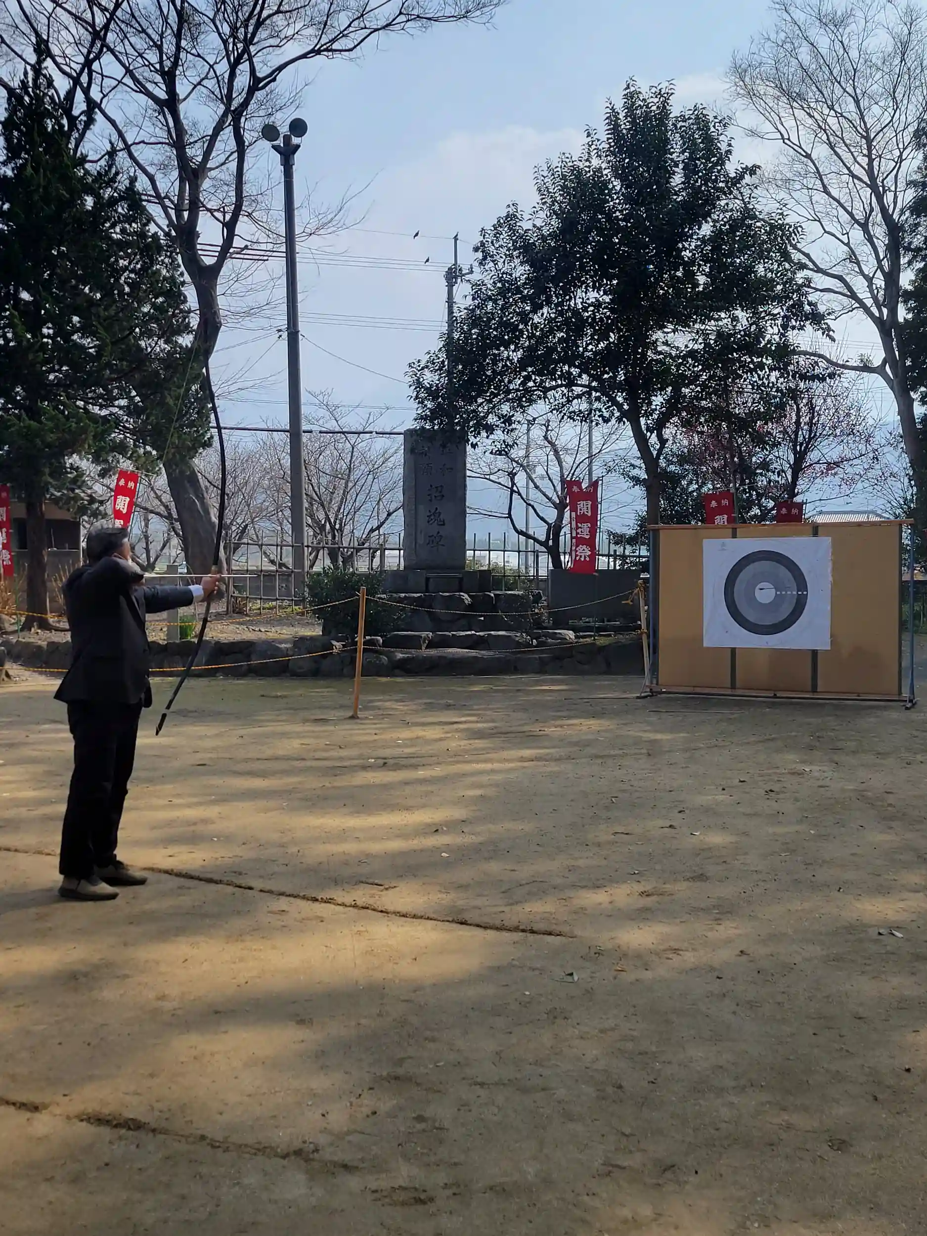 少年式のご祈祷や巫女による神楽舞には間に合わなかったのですが弓祈祷が行われている最中でした