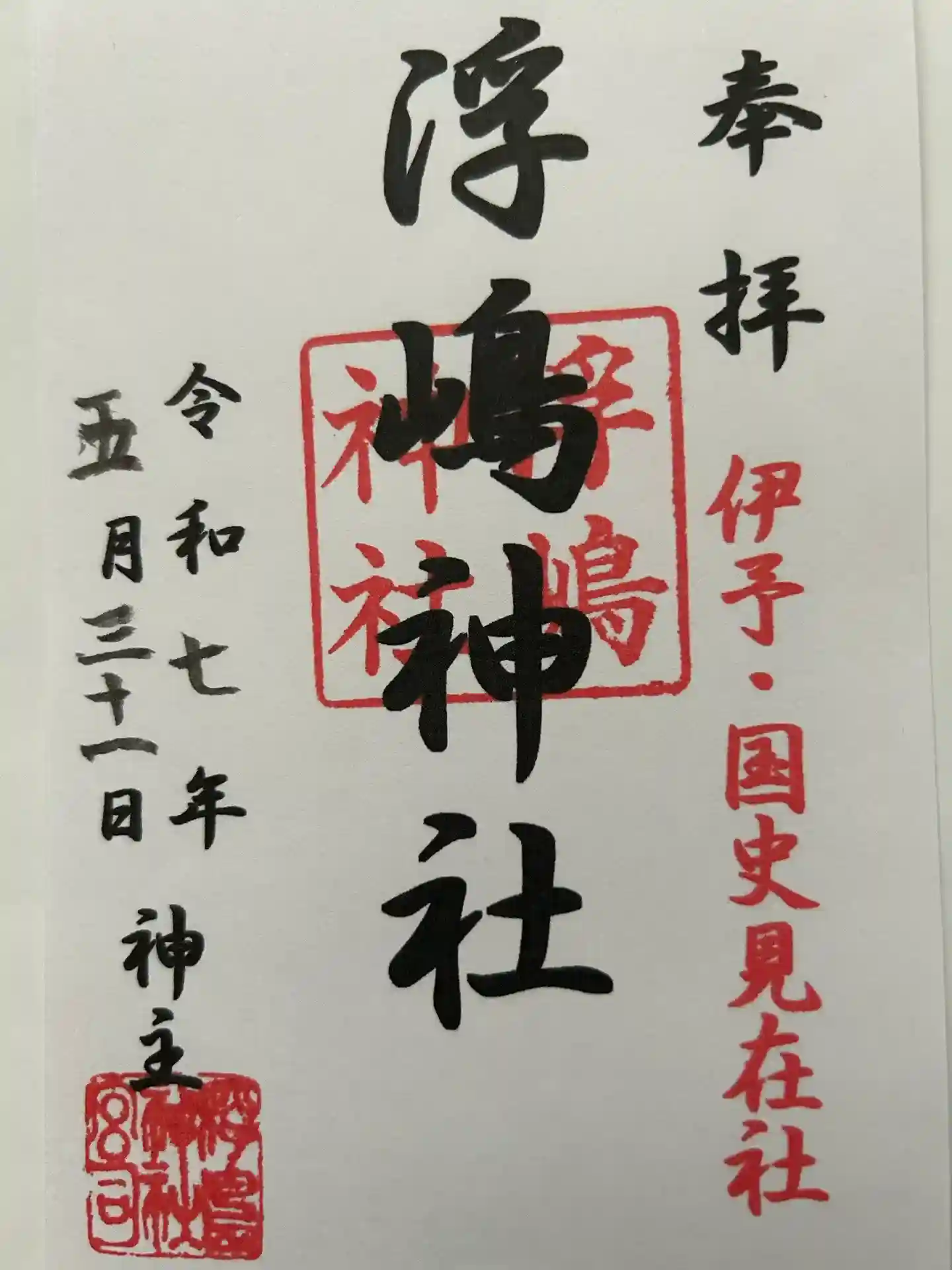 東温市エリアの香積寺に続き、浮嶋神社⛩へ参拝です♪伊弉諾尊、伊奘冉尊等が祀られています。御朱印が頂…