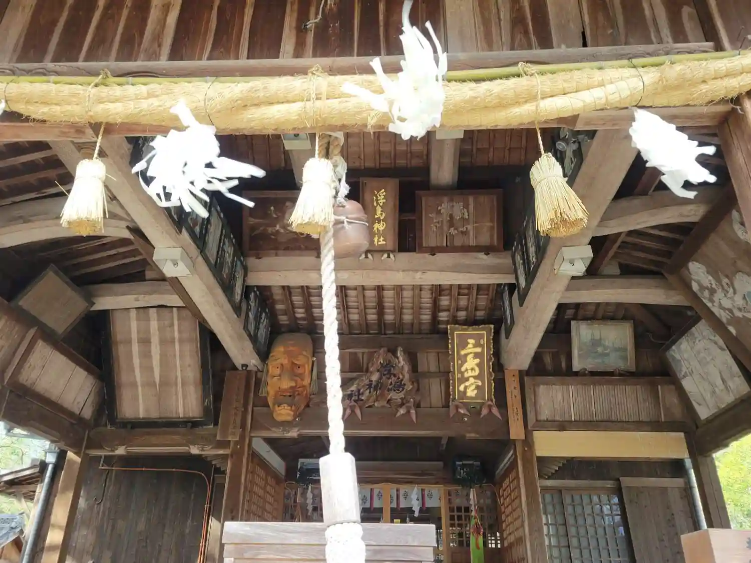 こちらも立派な扁額や御面が飾られています