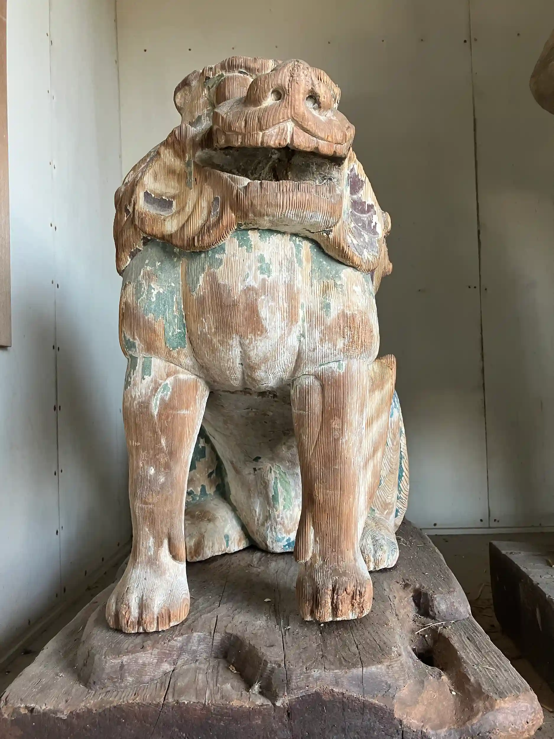 随身門の中に1359年製作の随身像と木造狛犬が納められている。