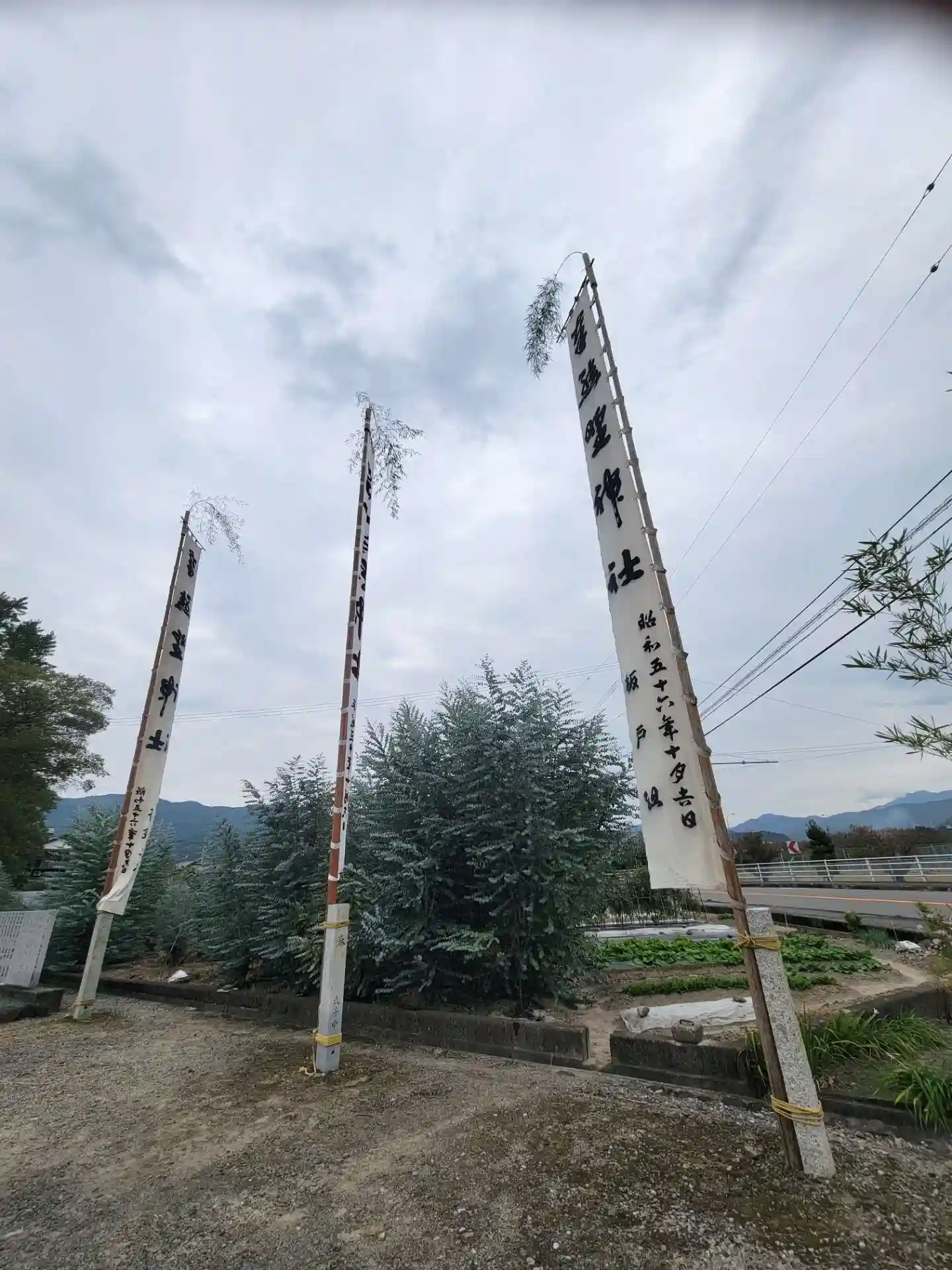 見づらいですが合祀された神社の幟も立っています