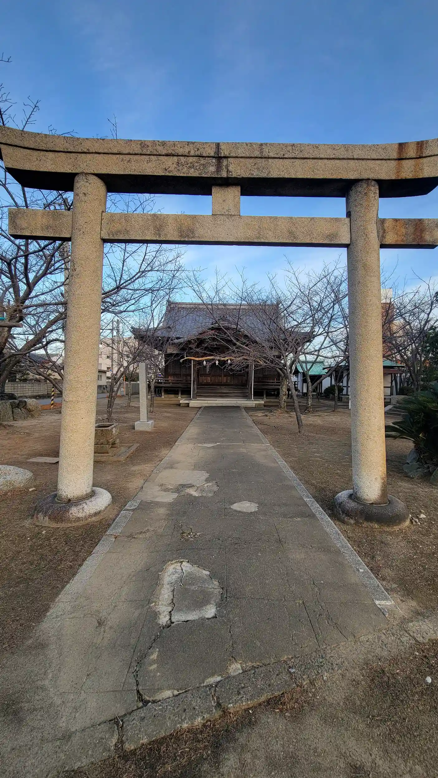 境内には梅の木が多く植えられていますがまだこの時期は枝があるのみです