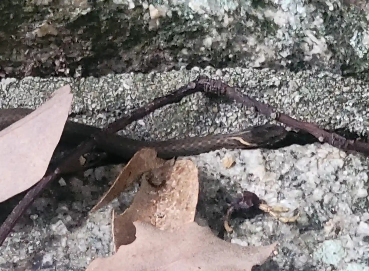 石段の途中で蛇の赤ちゃんに遭遇