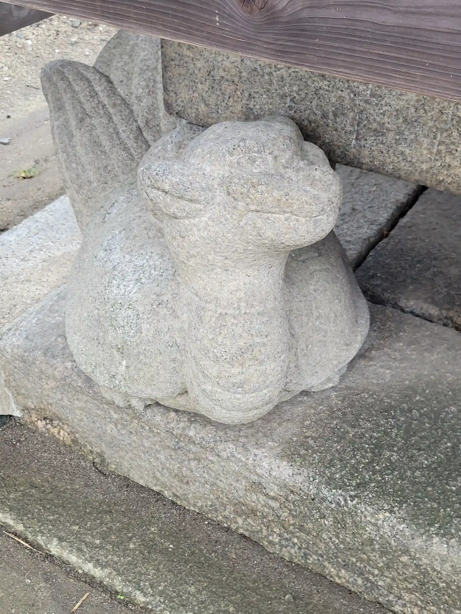 手水鉢の四隅を玄武が支えていました