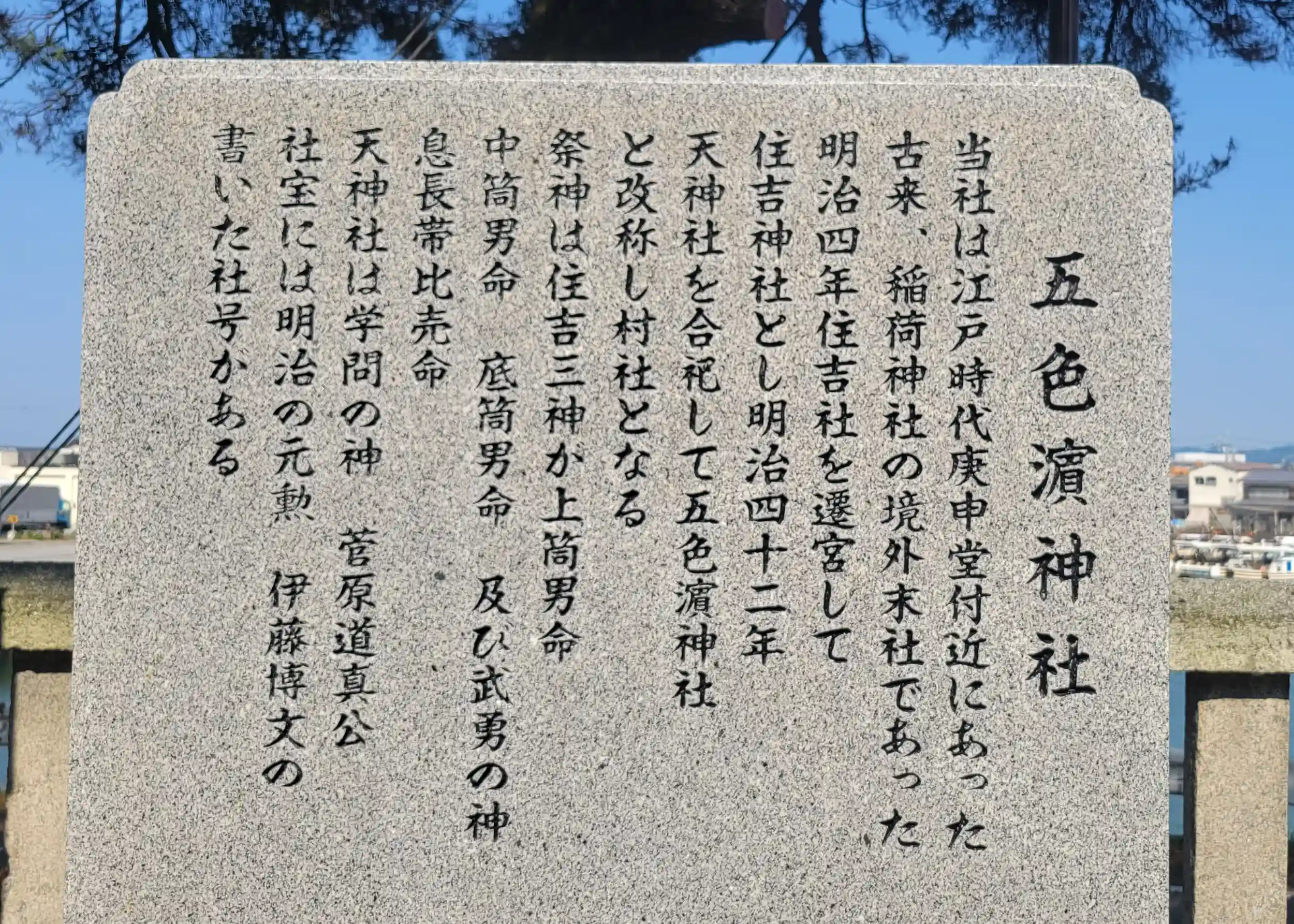 天神社の扁額のほうが見やすいのですが、五色濱神社の扁額は伊藤博文による書ということです