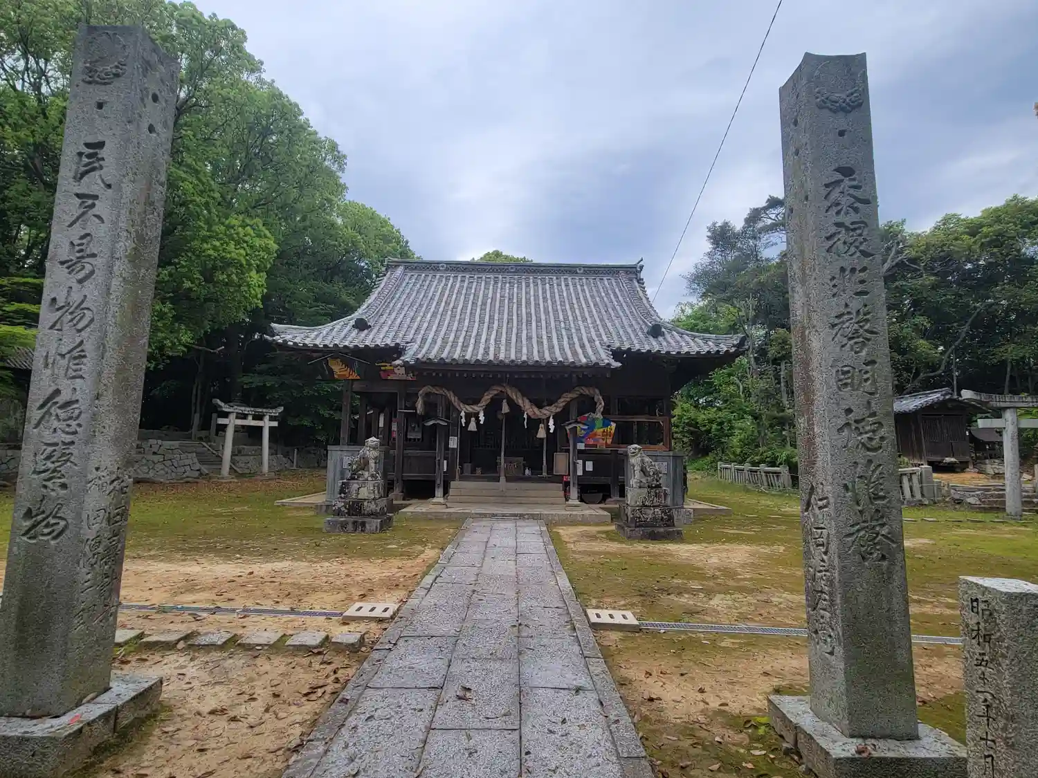 注連柱には“供物を捧げるより徳を積むことが大切”といった意味の言葉が書かれています