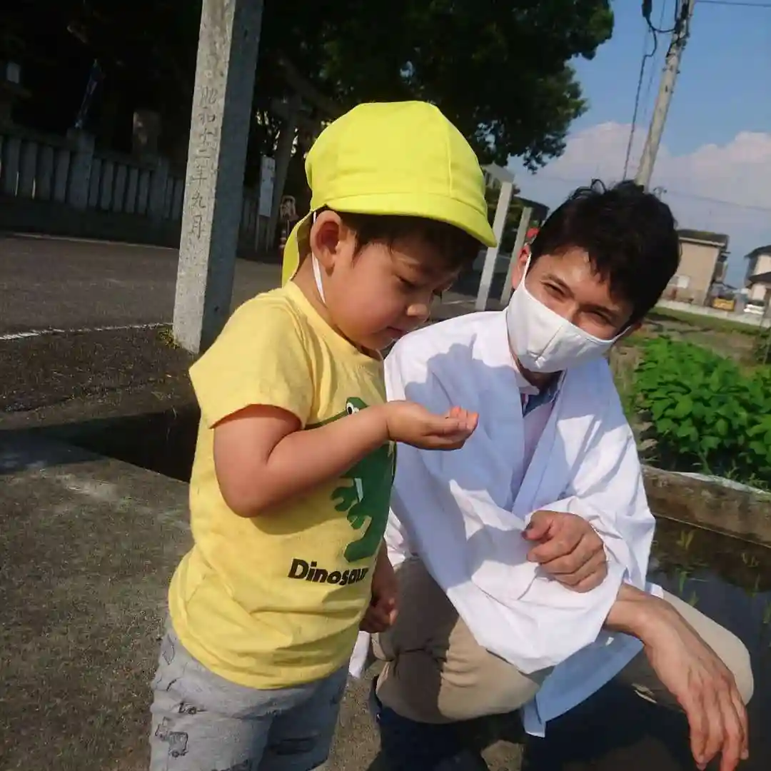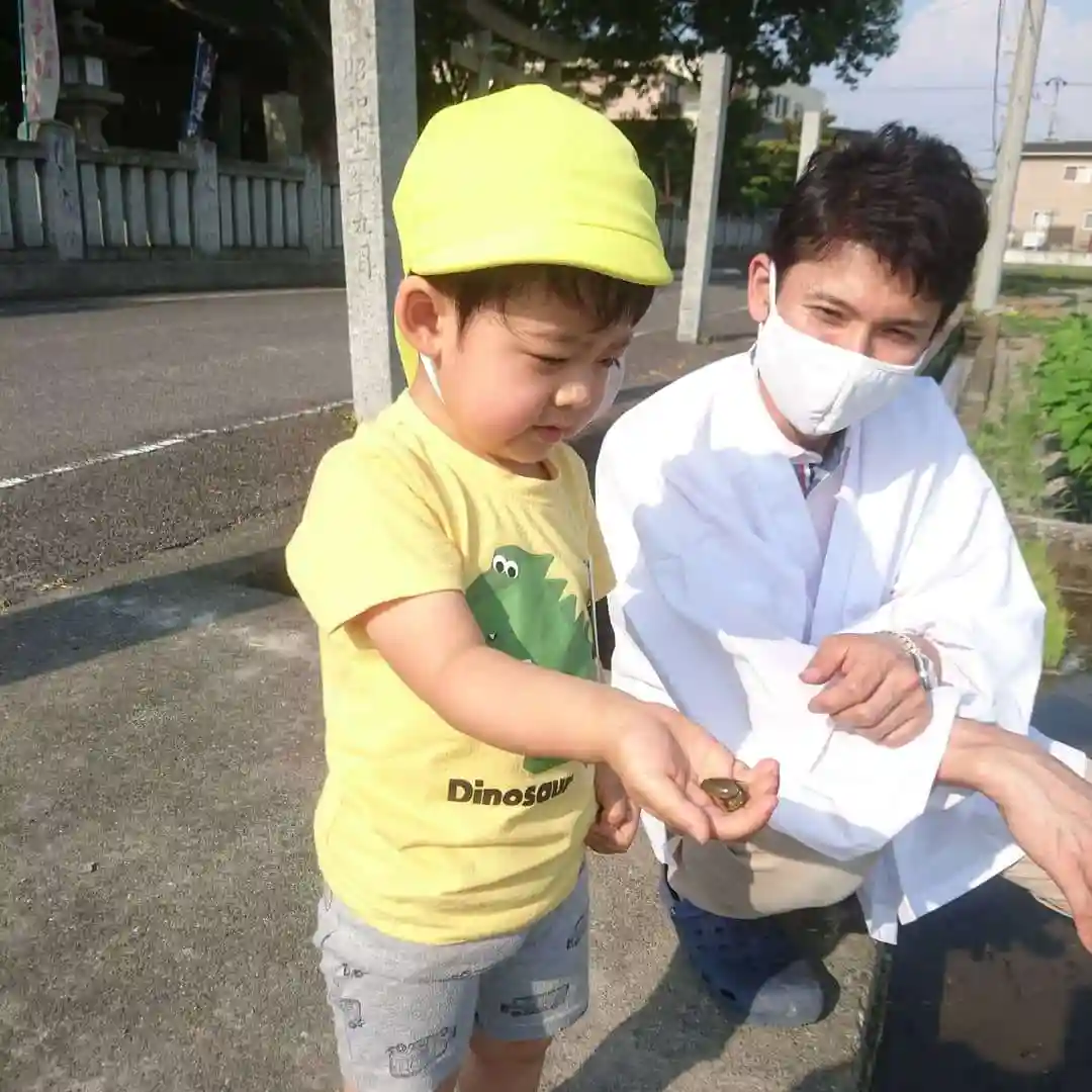 今の季節、お宮の周辺の田んぼにはカブトエビがたくさんいて、川にも泳いでいます。