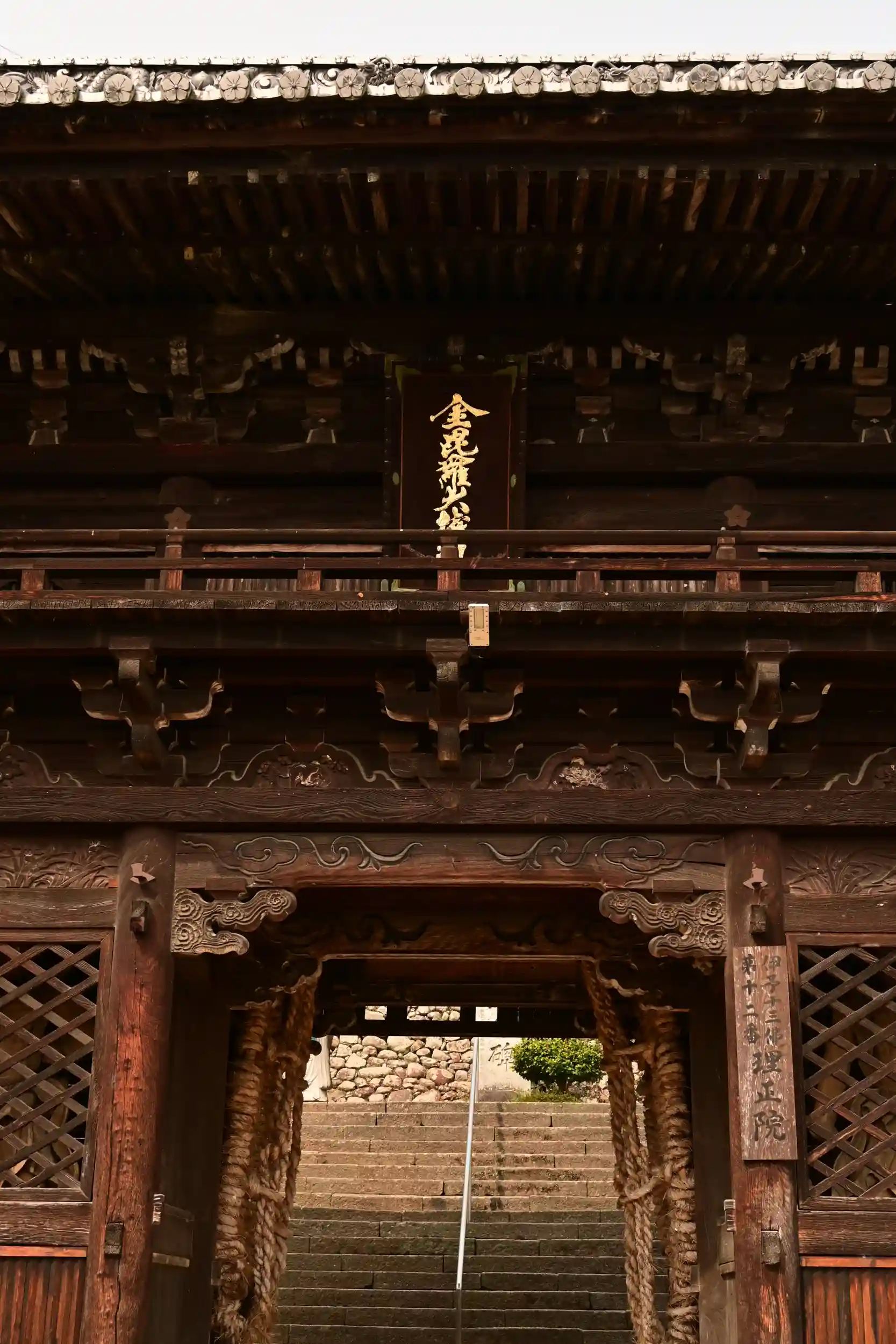 理正院は、愛媛県伊予郡砥部町麻生に位置します。807(大同2)年、弘法大師(774-835)が四国巡錫の折、伊予国司であった越智宿禰實勝(おちのすくねさねかつ)と相談のうえ、堂宇を建立して大日如来坐像を本尊としたのがはじまりとされます。時代は下り1187(文治3)年、伊予の豪族であった河野通信と通俊の親子が境内に金毘羅大権現の堂宇を建立し、一族平安の祈願処としました。