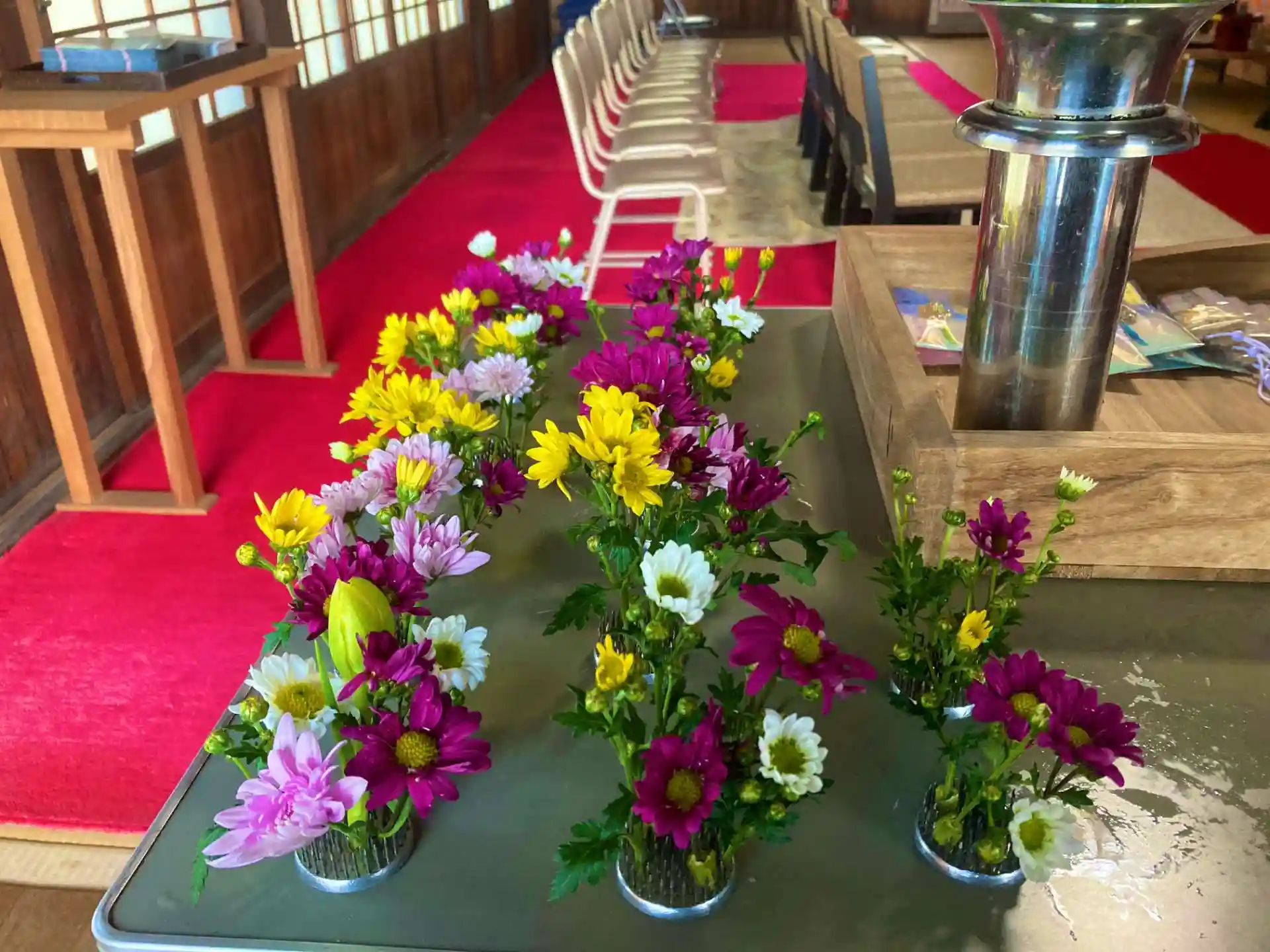 小さな剣山に花束を作り、それを置いていきます🌼