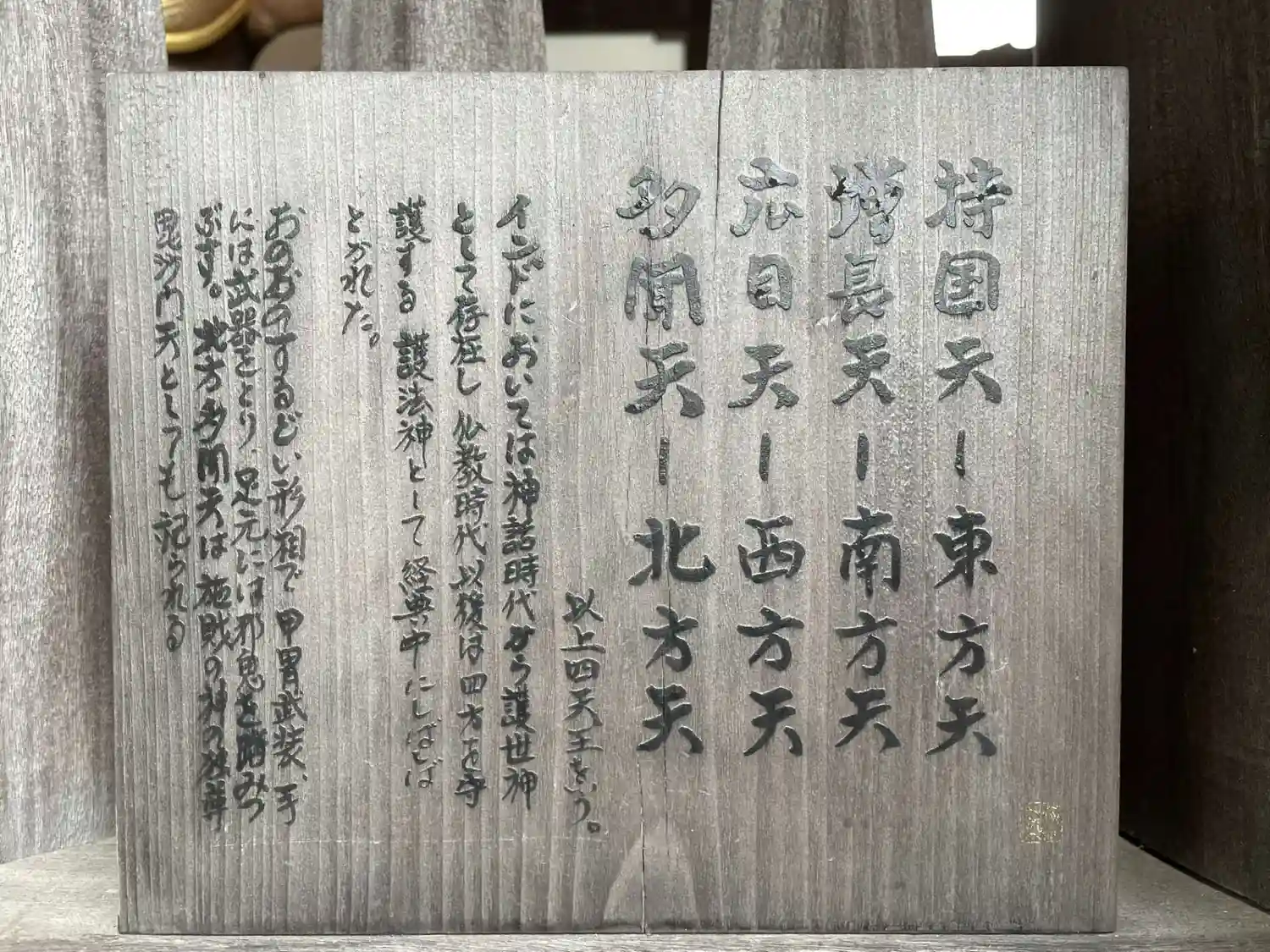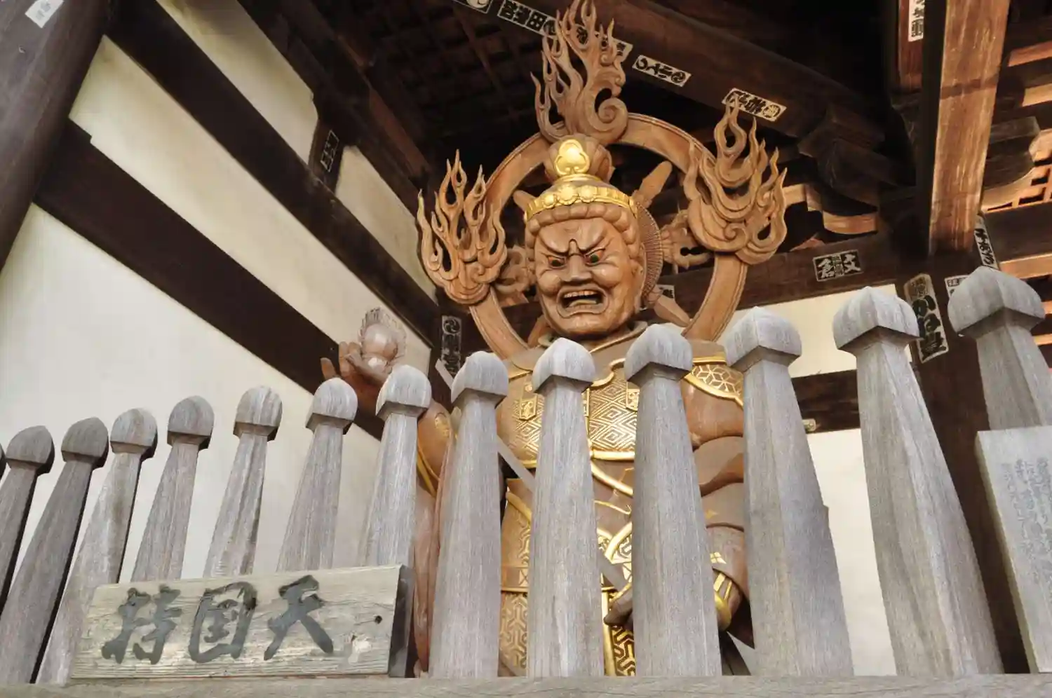 迫力ある四天王像が配置されている。