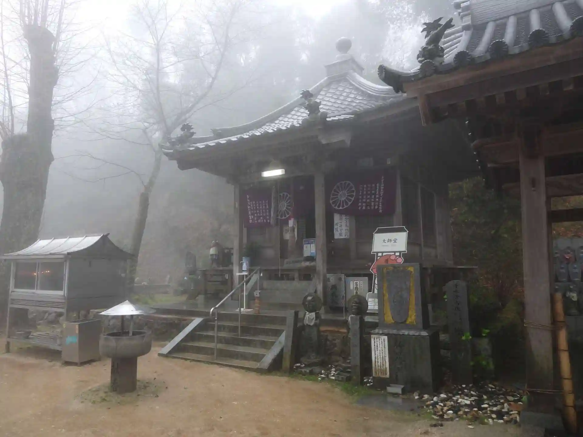 今治市は「海」のイメージですが「山」もあります。「霧」で何もかも見難い状況でした。境内に展望台・望遠鏡も設置されていましたが、何も見えません。