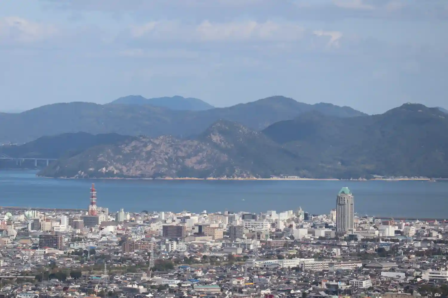 今治の市街地と四国一高い今治国際ホテル