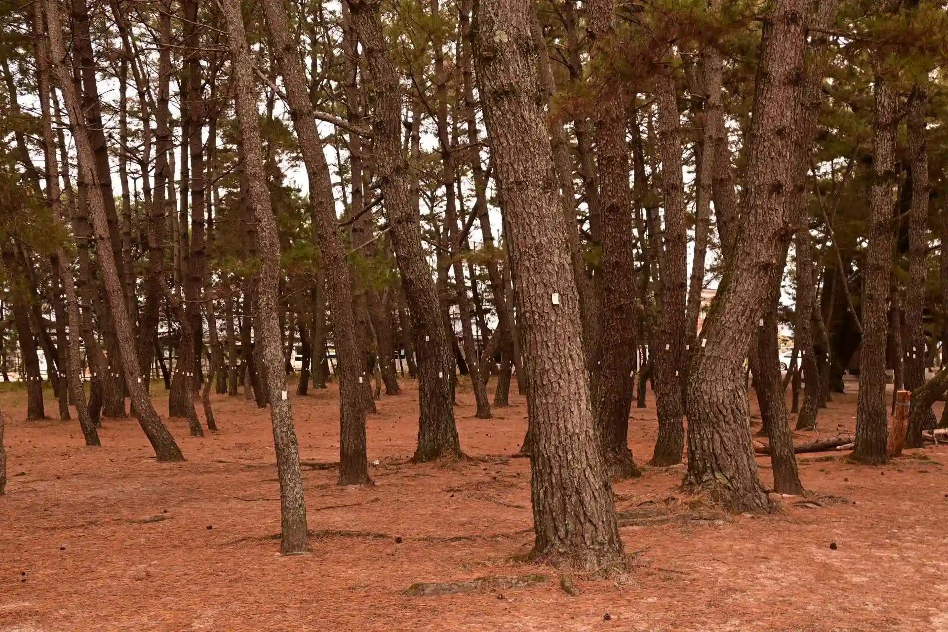 綱敷天満神社は、愛媛県今治市桜井に鎮座します。菅原道真公が藤原時平の策略によって大宰府の役人として左遷される途中、嵐に遭い志島ヶ原の東入江に漂着しました。そのとき里の漁師たちが漁船の綱を丸く敷いてもてなしたのが社名の起源だといわれています。神社のある志島ヶ原は、燧(ひうち)灘に面し、11ヘクタールの境内に約3000本のアカマツやクロマツが広がる白砂青松の景勝地です。
