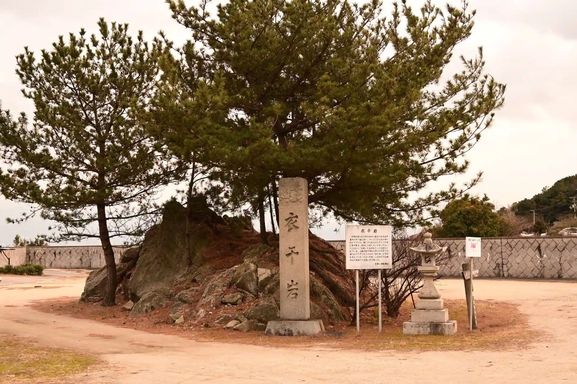 道真公が上陸の途中濡れた衣をかけた岩。