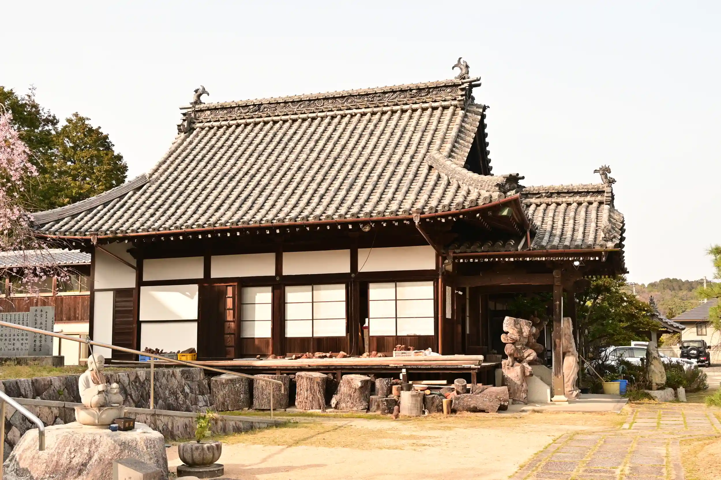 我家の菩提寺です。無量寺には、毎年春に素晴らしい花を咲かせていた「大しだれ桜」がありましたが、「根株腐朽菌」に蝕まれ、倒木の危険性もある事から、伐木されました。実に残念ですが、境内には新しく醍醐寺からもらいうけた桜や、「大しだれ桜」から接ぎ木で育てた後継の桜があり、大きく美しくなる姿を楽しみに待ちたいと思います。
