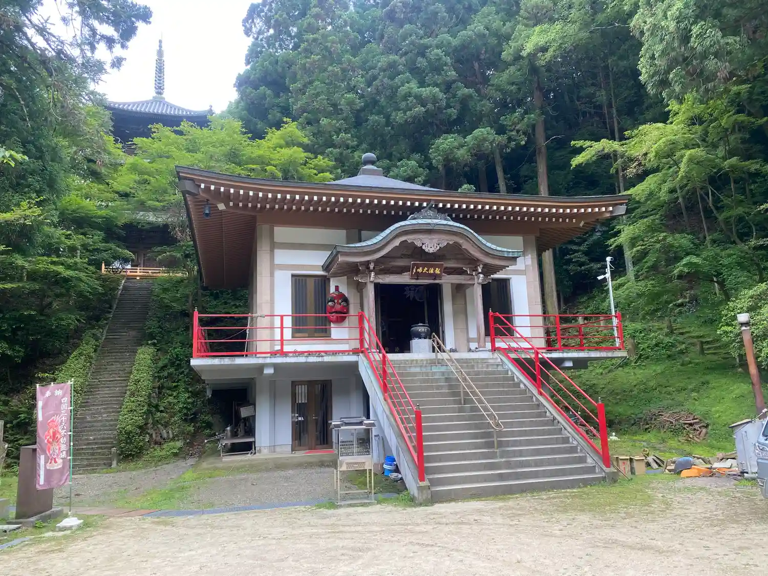 山門からかなり階段を登ったところに本堂、大師堂…