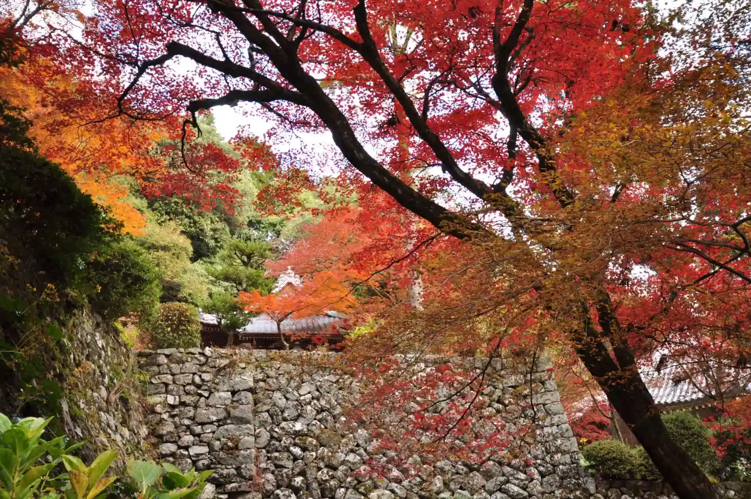 【石垣と紅葉】